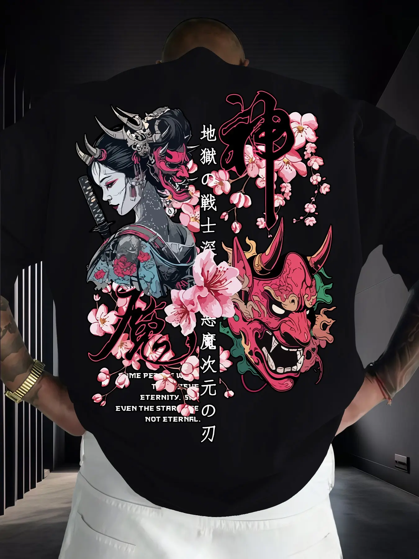 Men's Fashion Short Sleeve Round Neck T-Shirt, Japanese Ukiyo-E Print, Casual Summer Top, Daily Wear