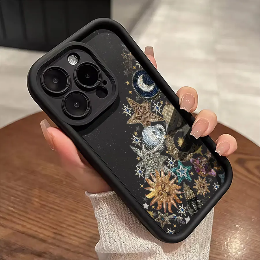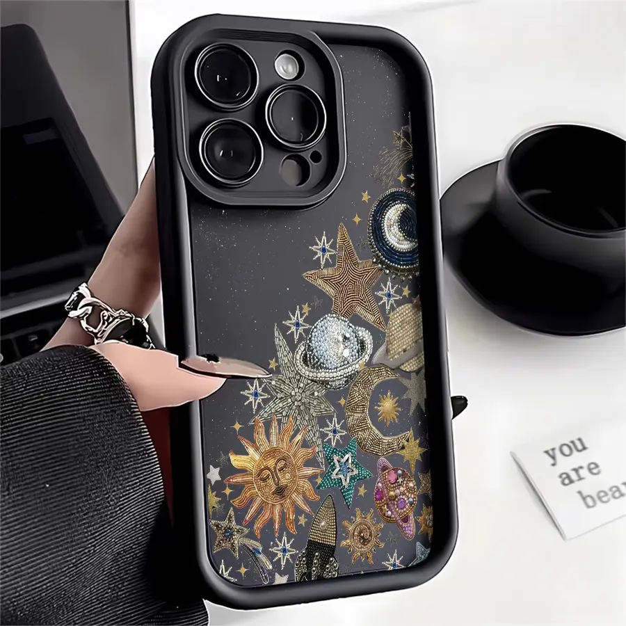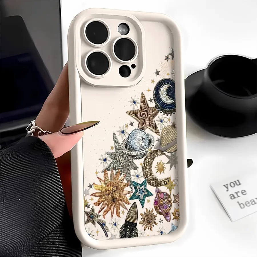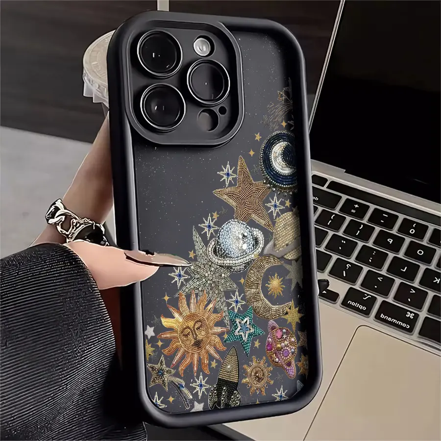 Celestial Sun Moon Planet Design Phone Case Suitable for Apple iPhone 17 E Air Pro ProMax iPhone16 15 14 Plus 13 12 Mini 11 X XS XR Shock Proof All Inclusive Lens Protection Vintage Stunning Can be given to friends