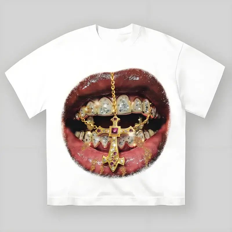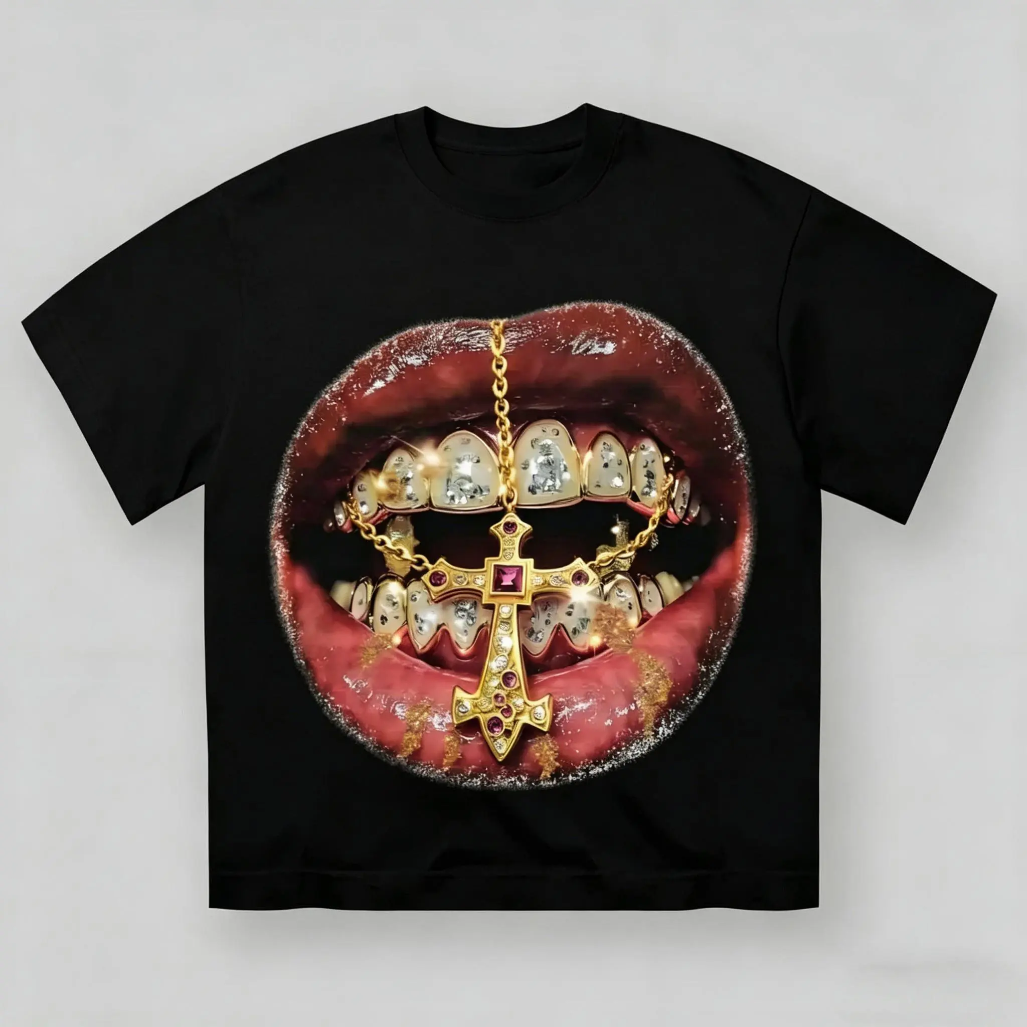 ·High Quality Gold Cross Diamond Patch: This t-shirt features a striking gold cross diamond patch, adding a unique touch to your wardrobe. Perfect for those who love a bold, alternative aesthetic.