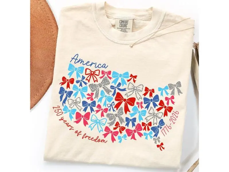 Americas 250th Anniversary Retro USA Flag Tee Semiquincentennial Shirt Coquette Bow 4th Of July USA 250th Veterans Day Gift Retro USA Shirt