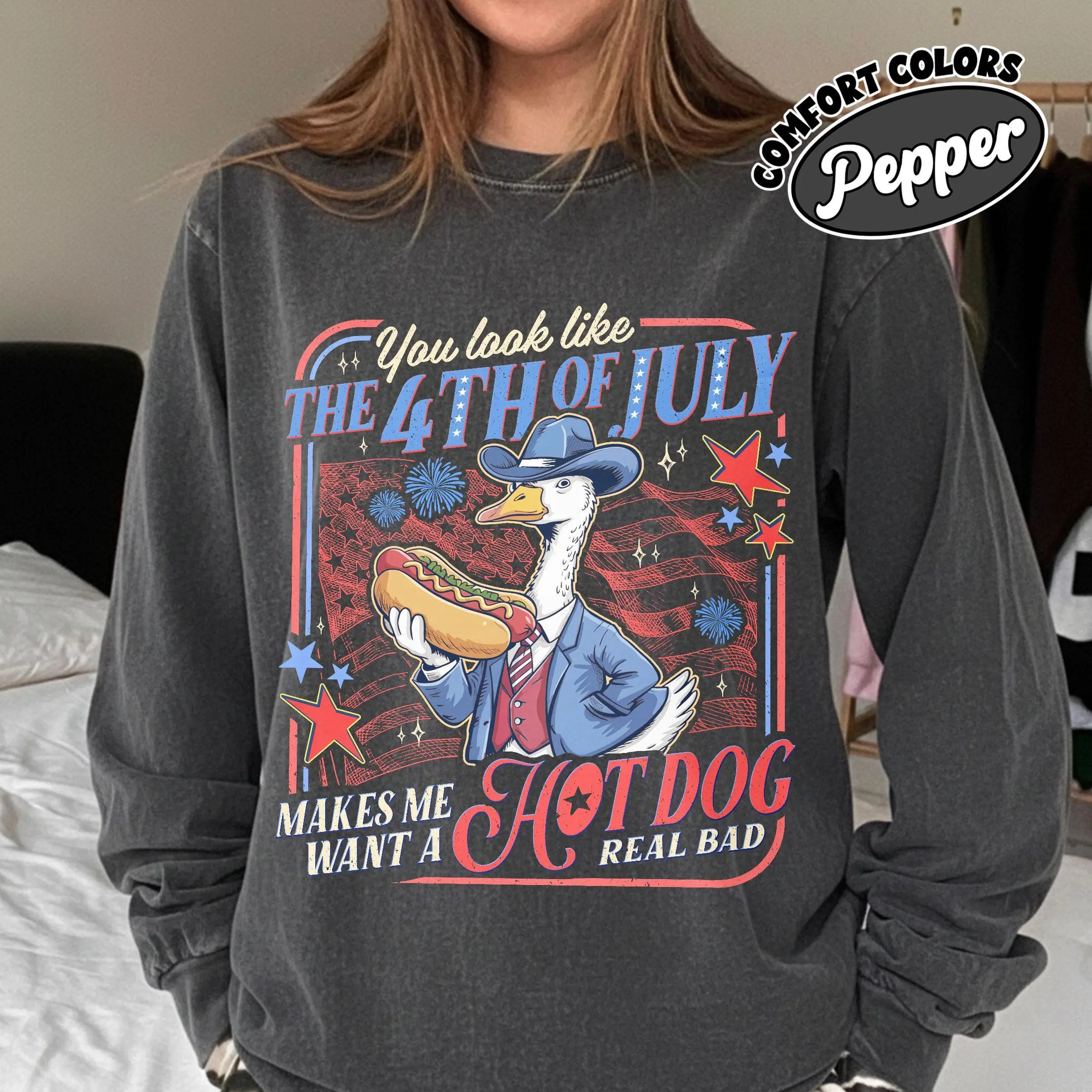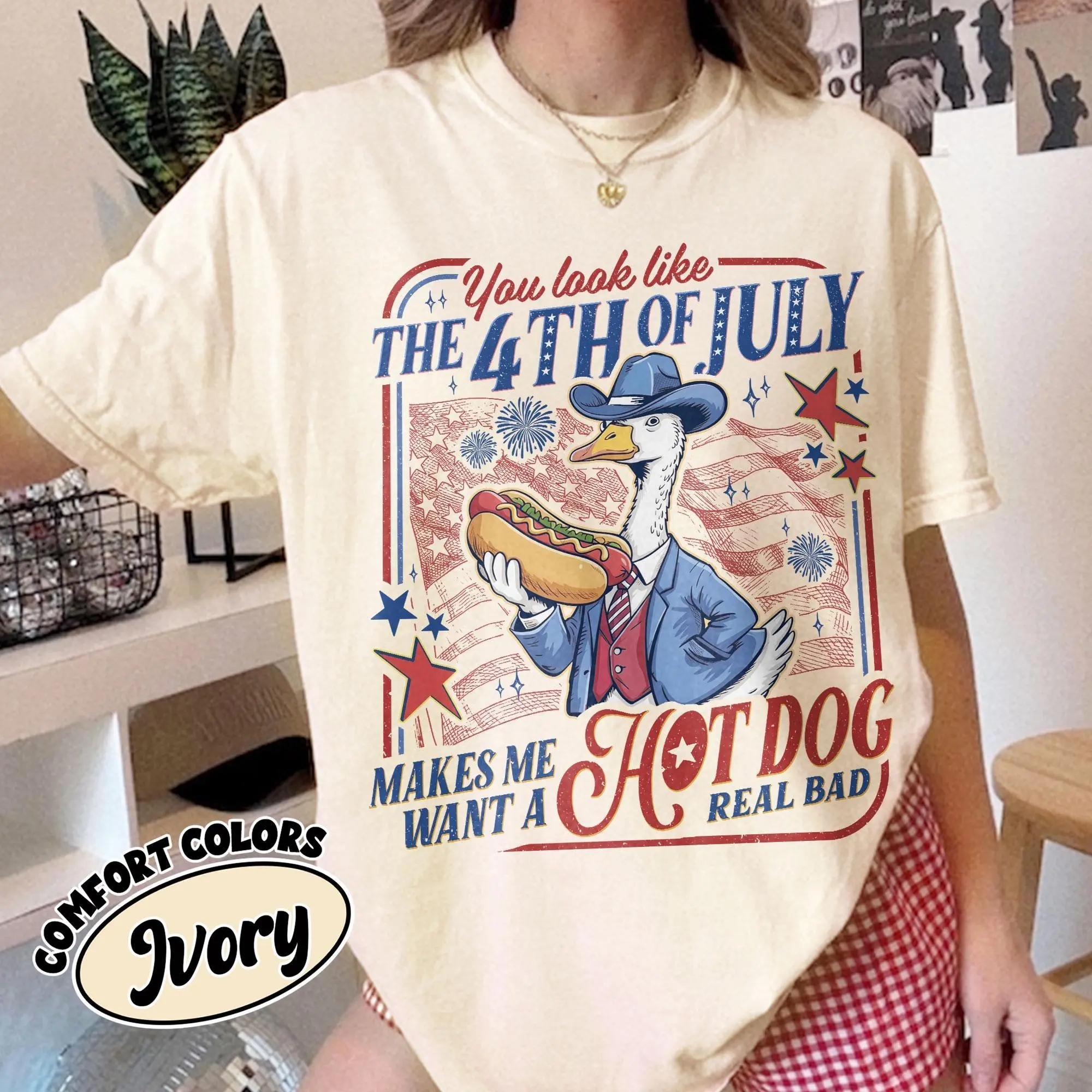 Funny Goose You Look Like The 4th Of July Comfort Colors Shirt Makes Me Want A Hot Dog Real Bad Tshirt Independence Day Tee