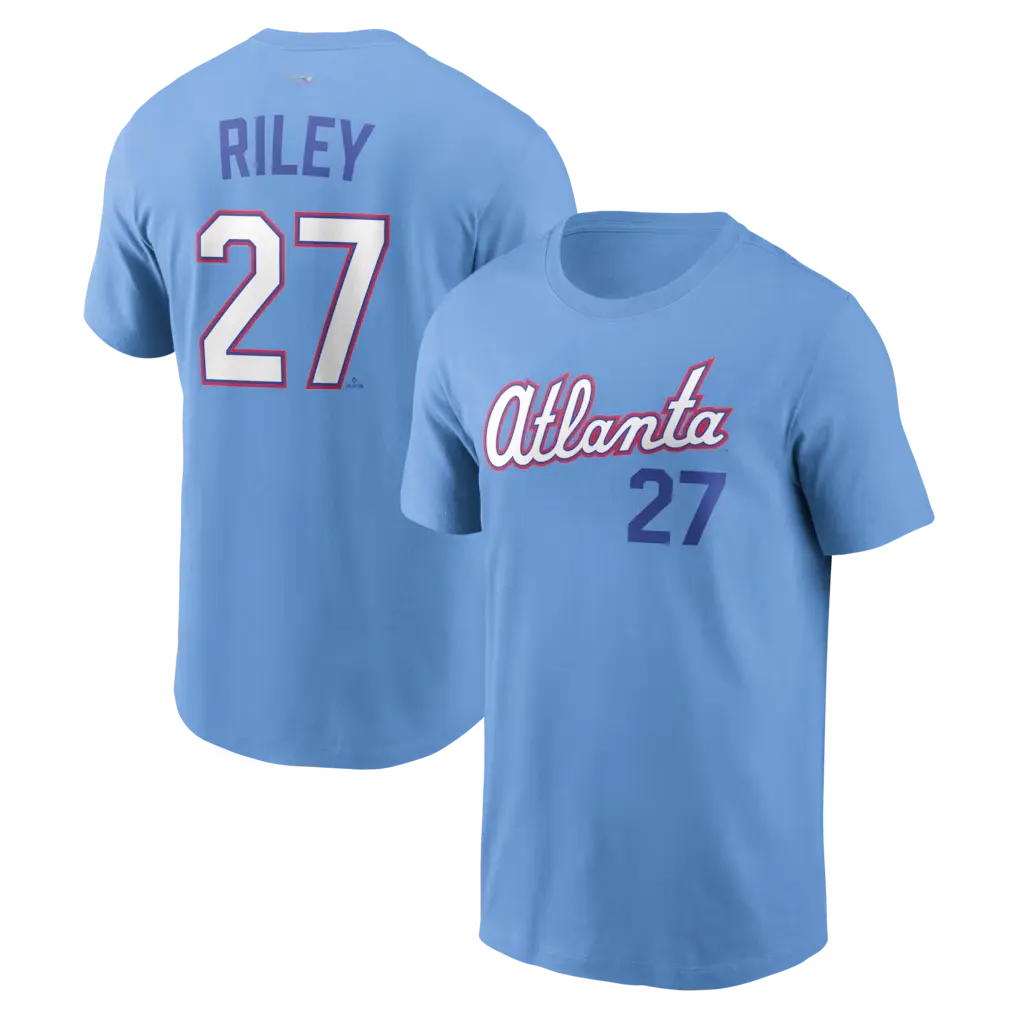 This light blue T-shirt features the name and number of Austin Riley, a key player for the Braves team. Perfect for fans looking to show their support. The design is tailored for the 2026 City Connect series, making it a must-have for collectors and enthusiasts.