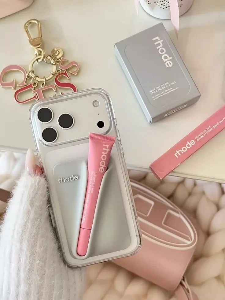 2026 Rhode MagSafe Lip Case Snap-On Lip Holder Phone Case with LipBalm for iPhone 17 16 15 14 13 12 11 Pro Max Plus Lipstick Toast Espresso Ribbon Cover