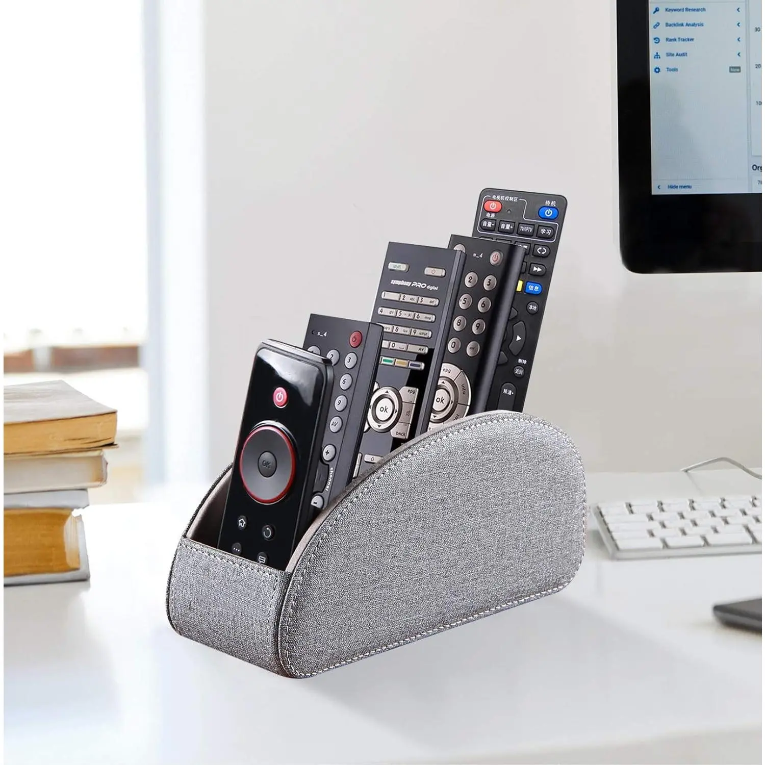 This tv remote caddy fits easily on a coffee table, couch, end table, armchair, bedroom, living room, kitchen, corner desk, counter, dresser, study room and office. Easy to track and assort all controllers.