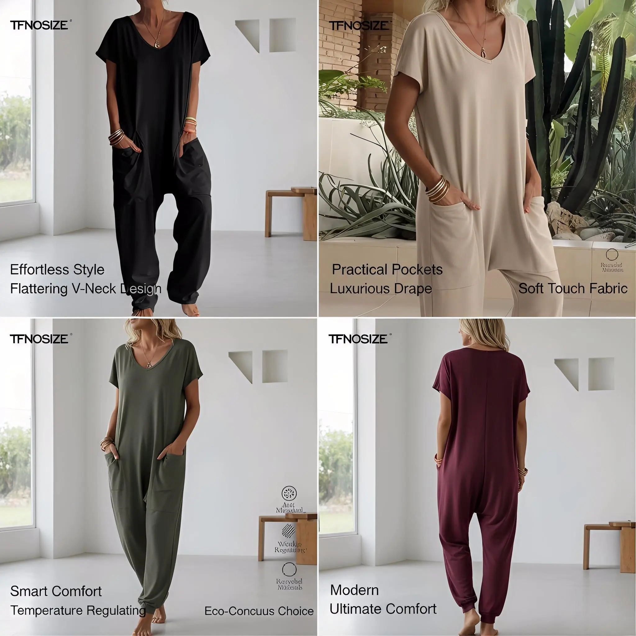 1/2/3 pcs Oversized Women's Harem Jumpsuit, Bohemian Style One-Piece with Side Pockets, Casual Fashion for All-season 2026 Sports and Outdoors