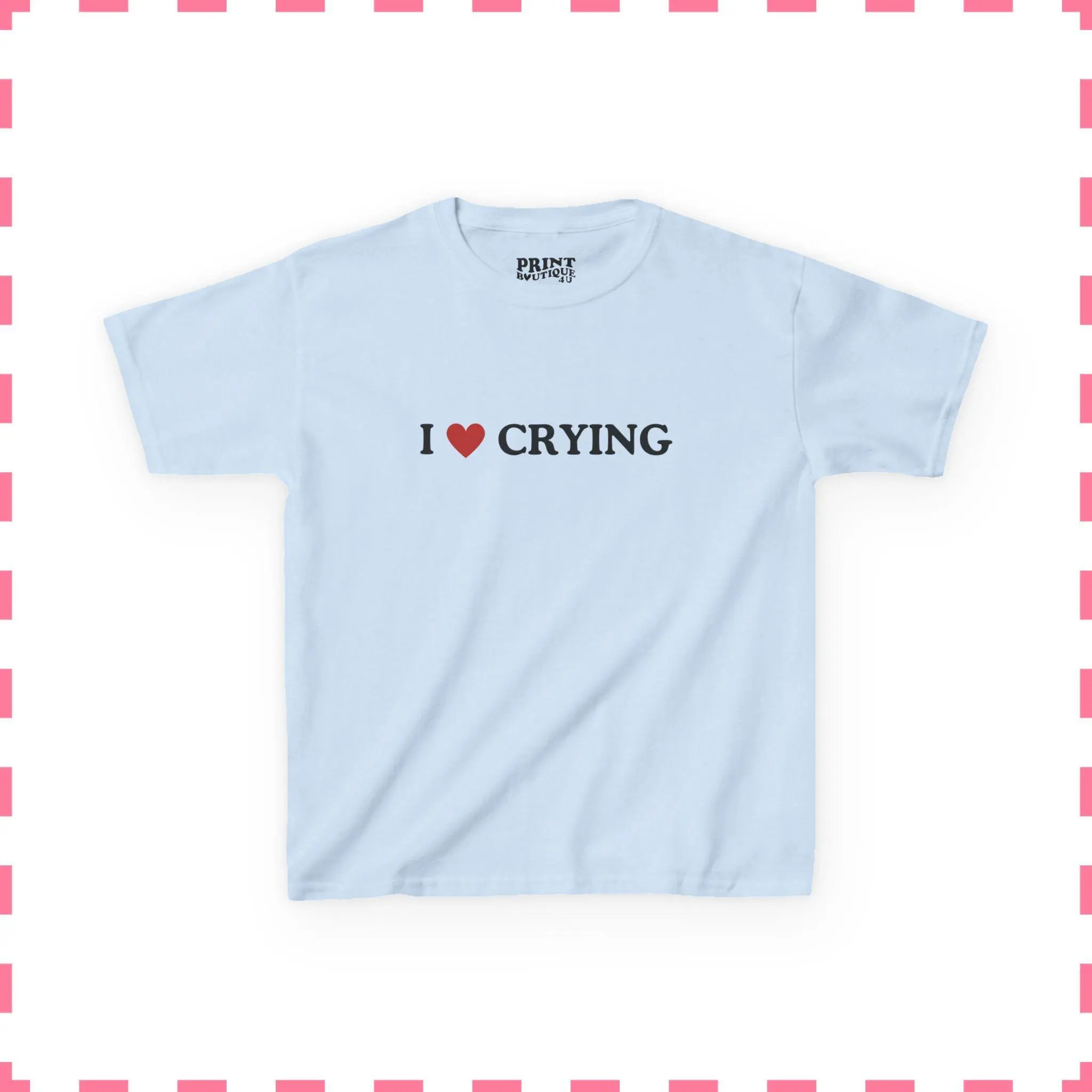 I Love Crying Baby Tee Sad Girl Aesthetic Shirt Funny Quote Baby Tee Y2k Graphic Crop Top Retro Cute Womens Baby Tee