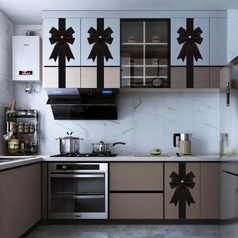 Materia: this cabinet festive ribbon bow is made of fabric material, quality and strong, not easy to break and wear,comfortable to touch, and won't scratch your furniture, available for a long time usage;Smooth surface and soft texture makes it look elegant, fine to decorate the door and cabinet