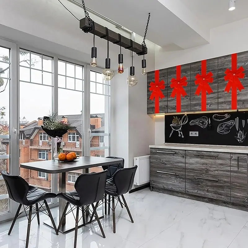 Occasions:Beyond cabinets and doors, unleash your creativity!Use these multi-purpose bows as charming table centerpiece accents, gift toppers with wow-factor, festive wall hangings, or even chair back decorations.This 6 piece bundle provides incredible value and flexibility for all your holiday decorating needs.