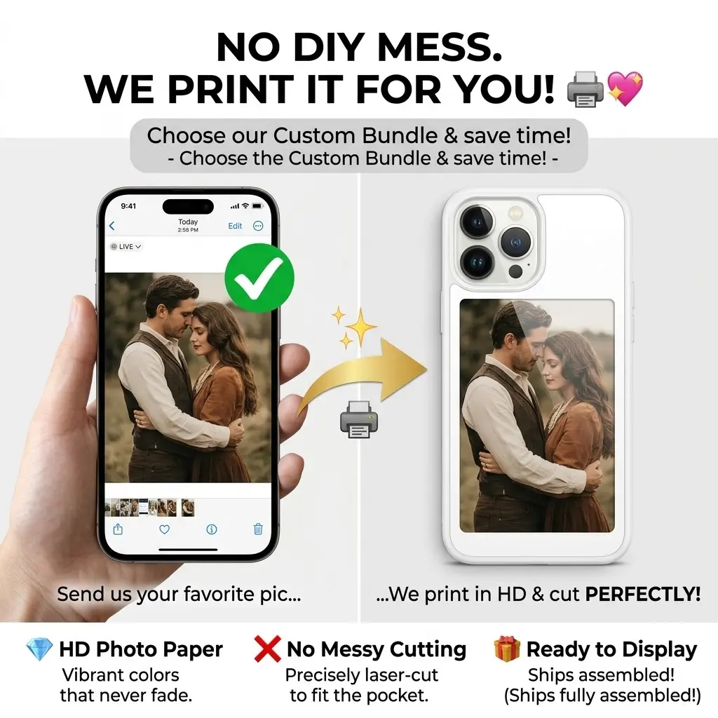 THE BEST PART? WE PRINT THE PHOTO FOR YOU! Don't stress about measuring, cutting, or ruining photos yourself. If you choose our Custom Bundle, simply send us your favorite pic! We will print it in stunning HD quality, cut it to the exact size of the pocket, and ship it ready to display!