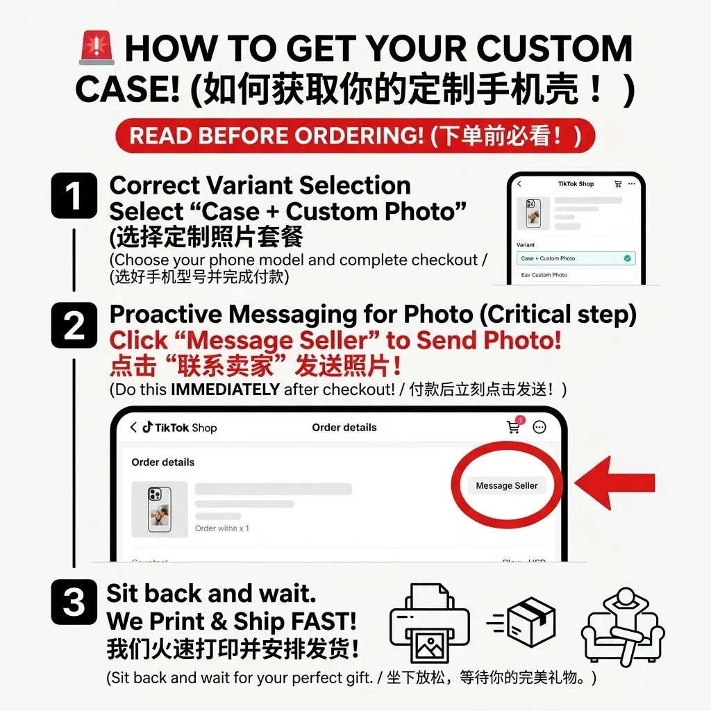 IMMEDIATELY go to "Message Seller" and send us your high-quality photo! (Note: If you order "Case Only", no photo will be printed).