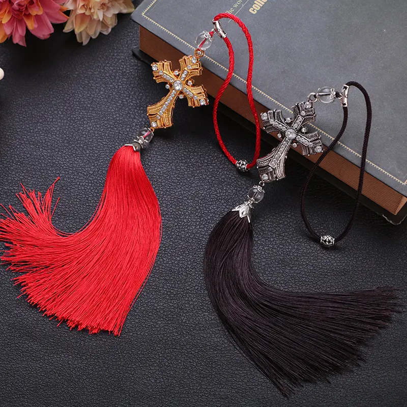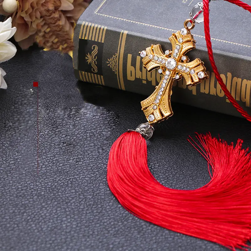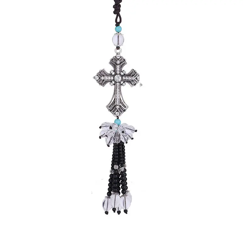 Alloy Crystal Diamond Car Pendant Peace Cross Interior Rearview Mirror Decoration Car Accessories