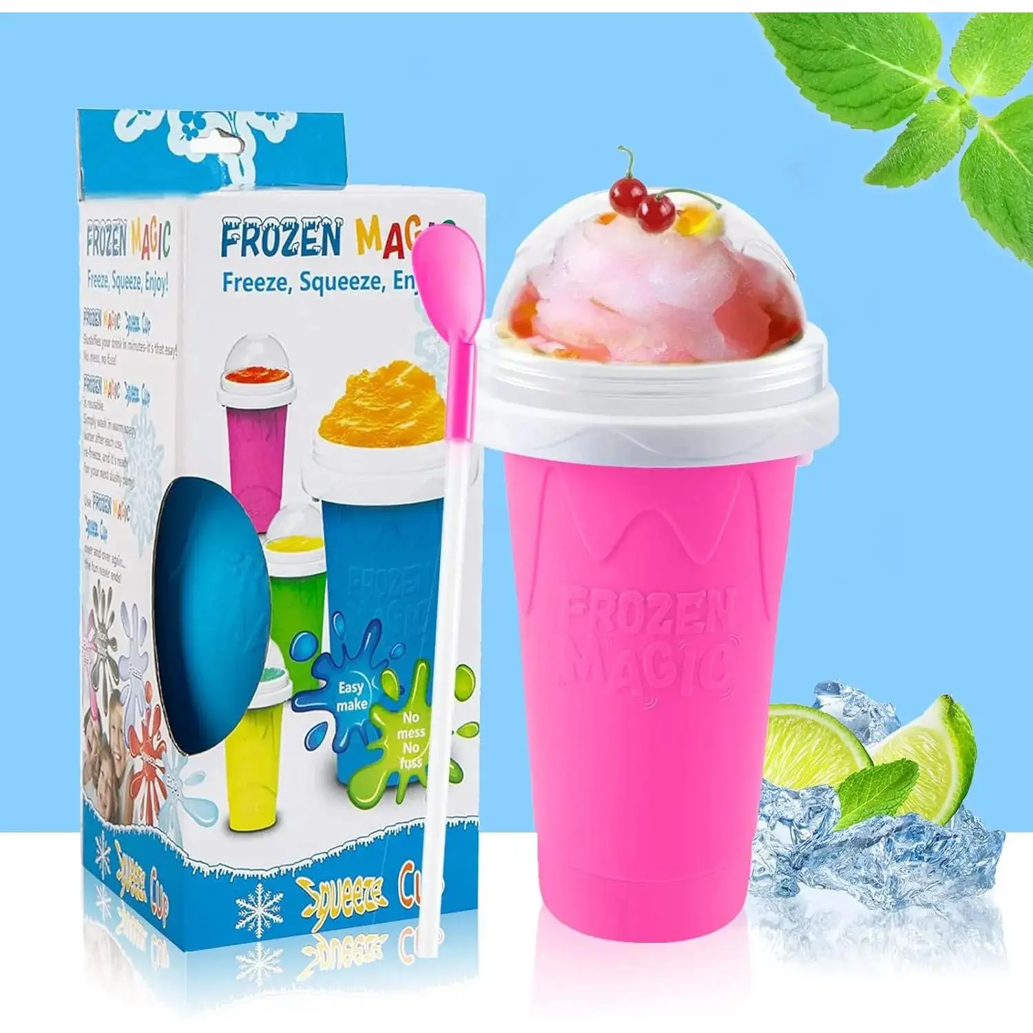 These cups feature a double layers silica design, ensuring quick cooling and smoothie perfection.Ideal for making frozen treats.Available in yellow and pink.These cups are designed for quick cooling, making them perfect for making frozen treats.🌈