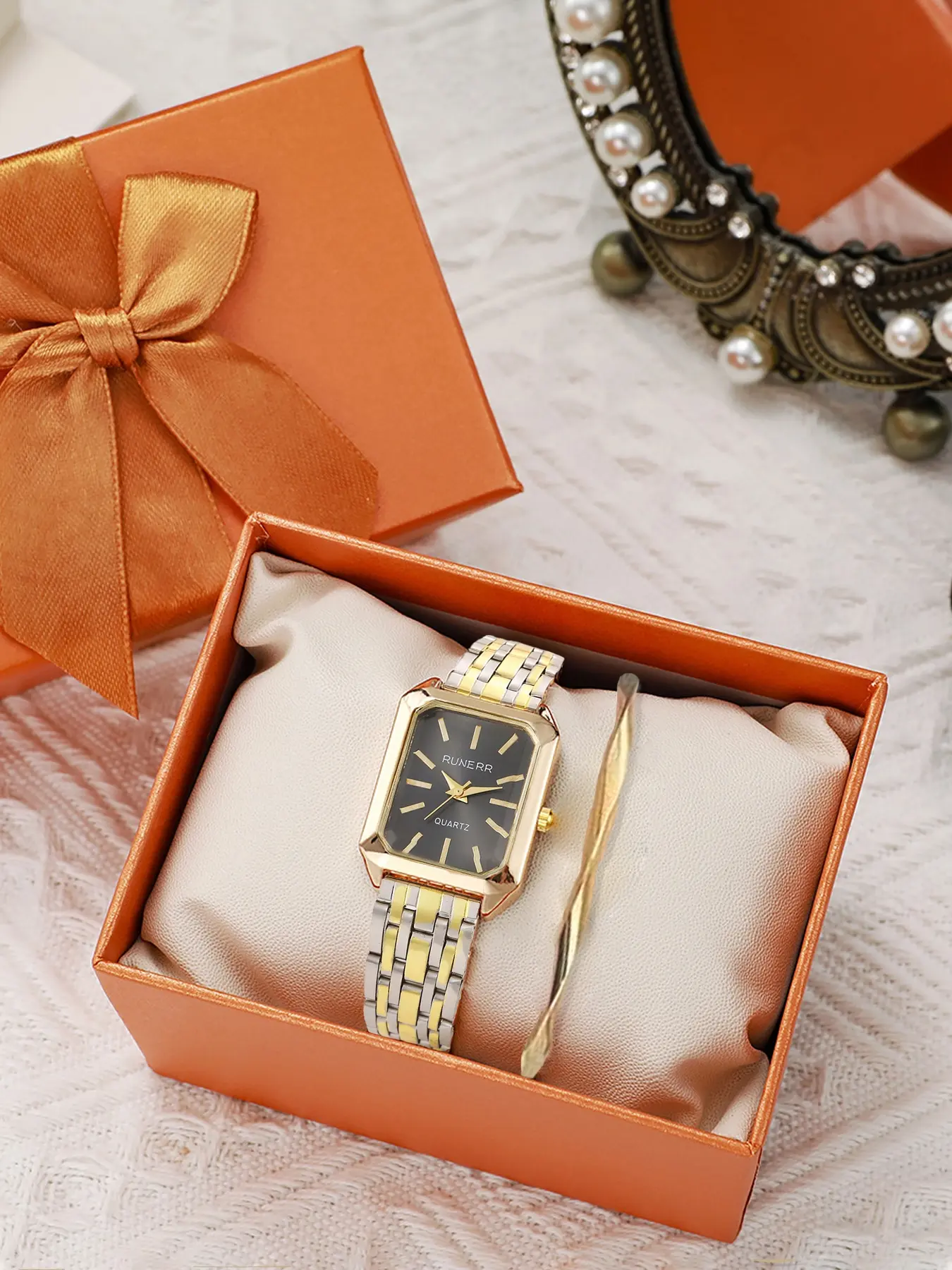 Minimalist Versatile Square Exquisite Fashion Quartz Watch — Fashion Light Luxury Student Watch Set
