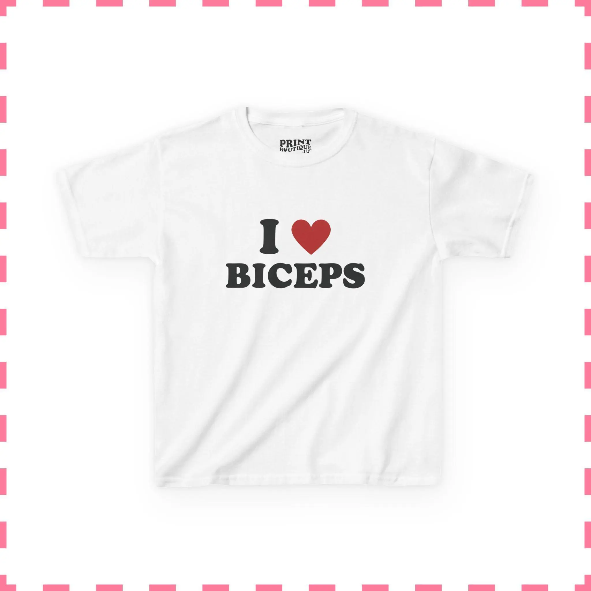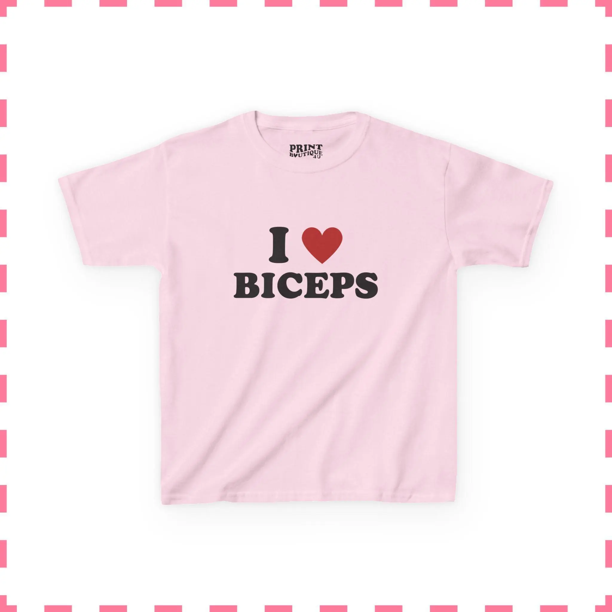 I Love Biceps Baby Tee Funny Womens Baby Tee Cute Y2k Crop Top Retro 90s Aesthetic Shirt Coquette Baby Tee Girly Graphic Tee