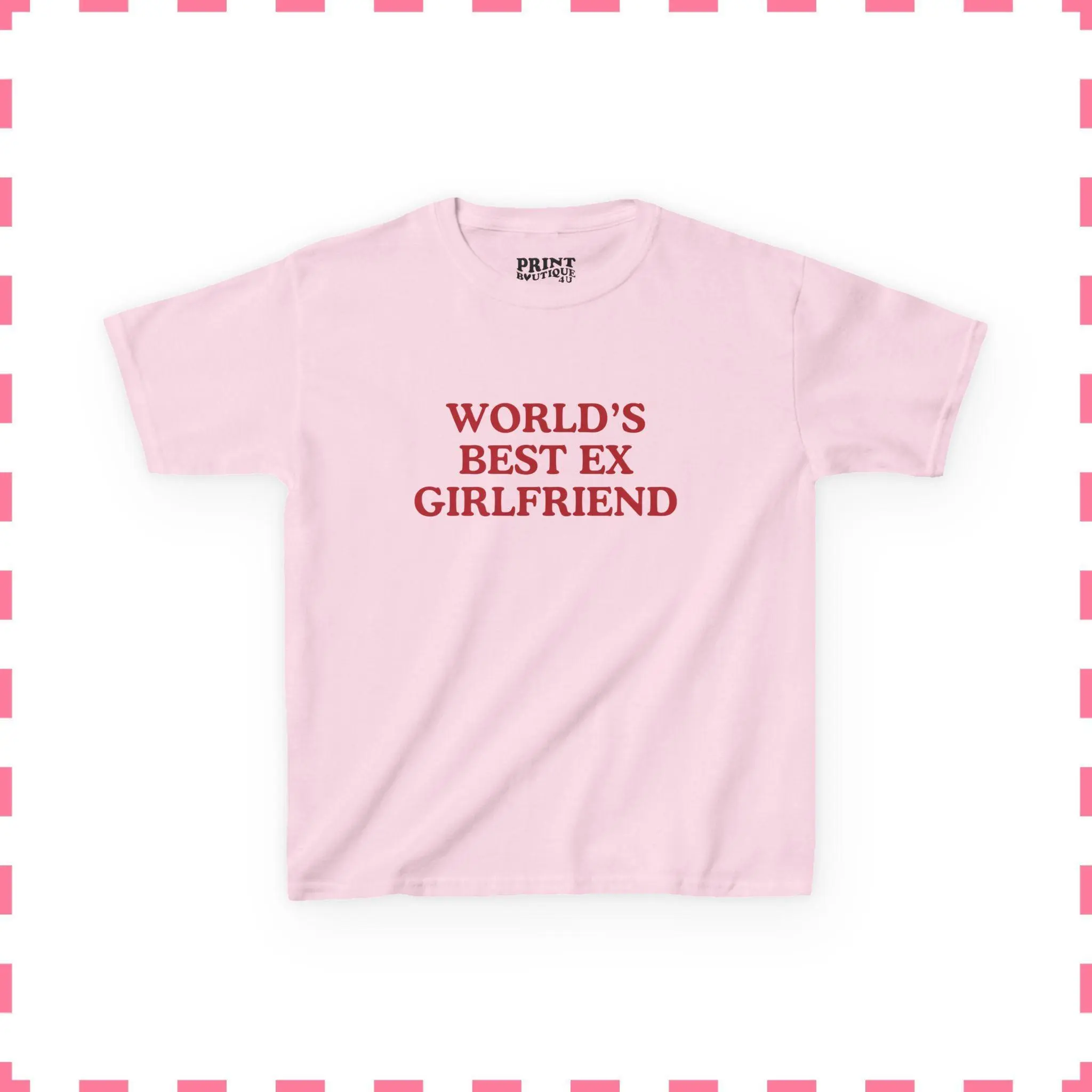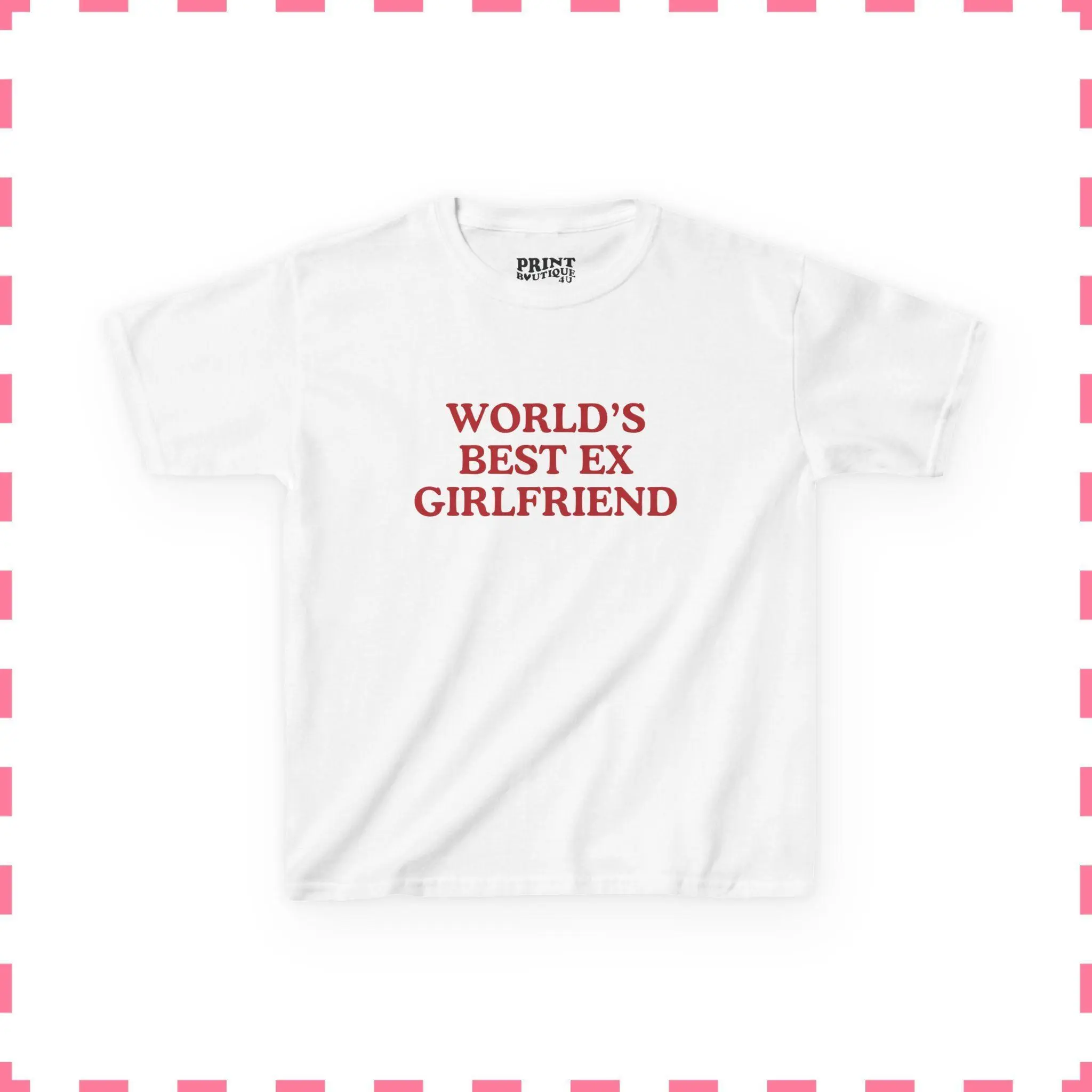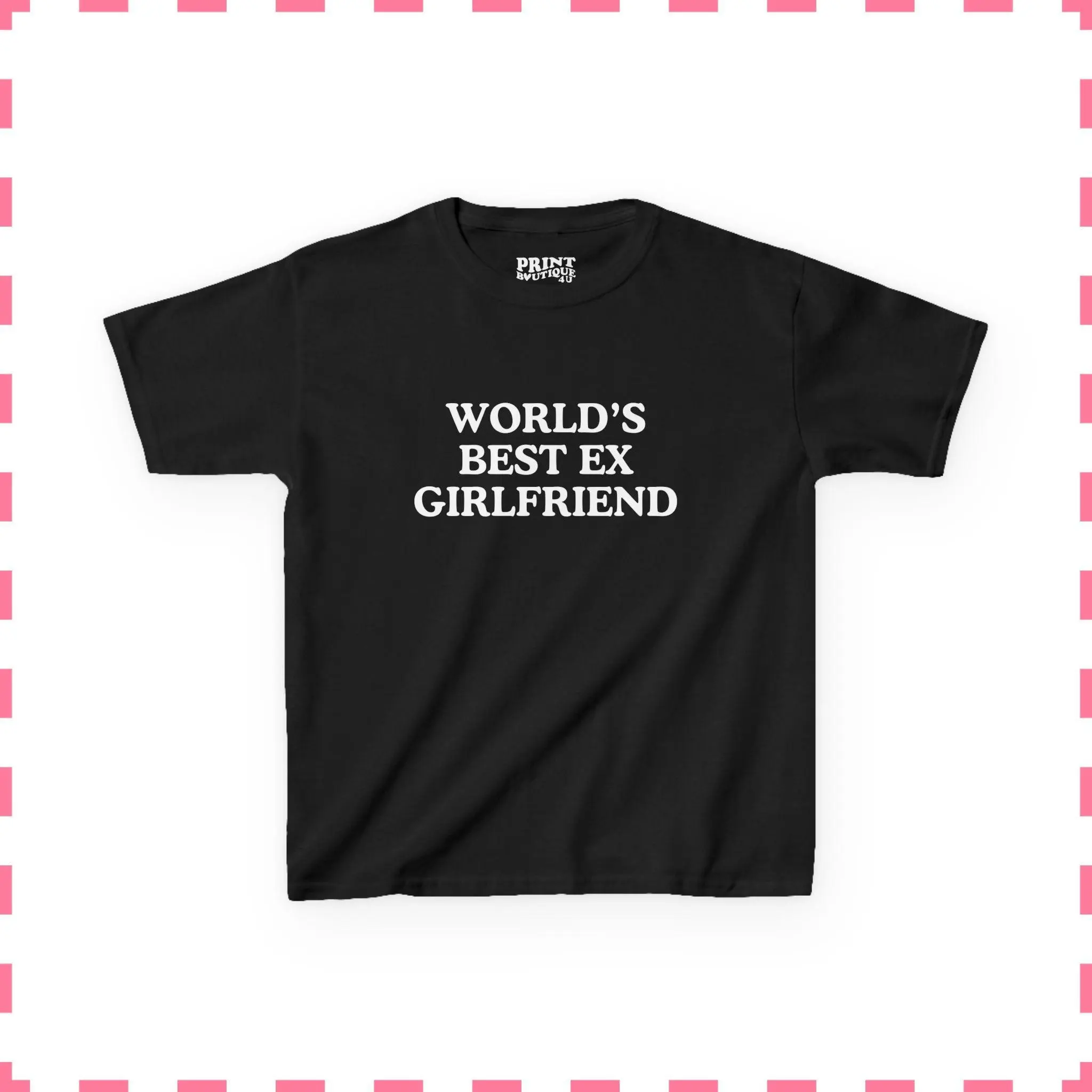 Worlds Best Ex Girlfriend Baby Tee Funny Graphic Tee Retro Baby Tee Y2k Womens Crop Top Breakup Shirt 2000s Style Tee