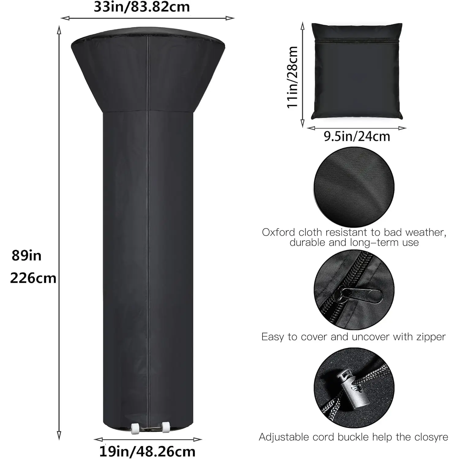 Patio Heater Covers with Zipper and Storage Bag,, Wind-Resistant, Sunlight-Resistant, Snow-Resistant, Black, 89'' Height X 33" Dome X 19" Base