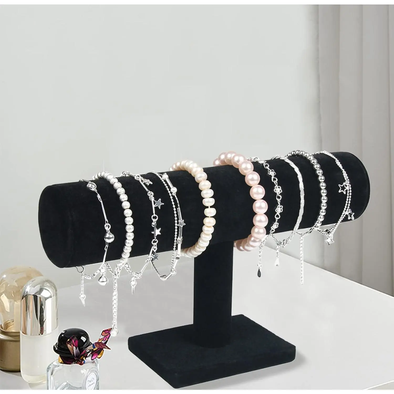 Exquisite appearance and durable design. A stylish addition to any vanity. Featuring three tier with removable bars to hold and display your jewelry collection, keeping your dresser clutter-free. T-Bar design of our jewelry stand keeps all of your jewelry in sight and easily accessable, which is sure to help you organize your jewelry collection without taking up much space.