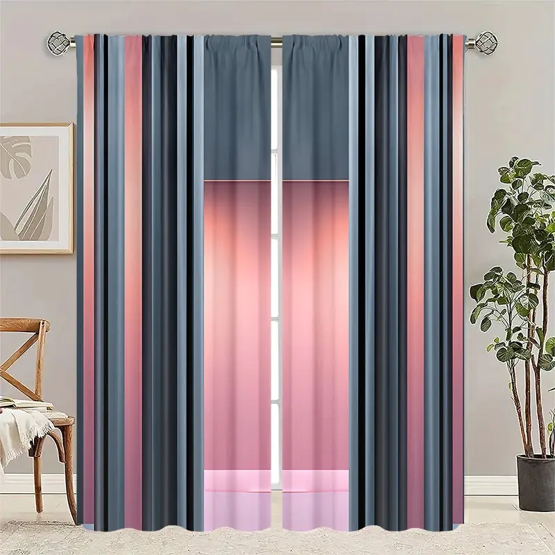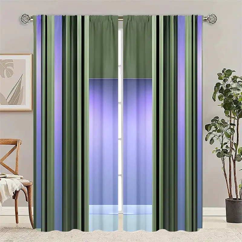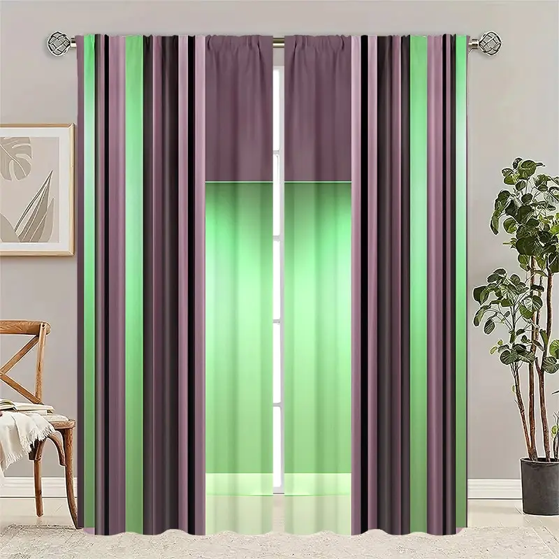 2 pieces of Mordani color-matching geometric patchwork printed curtains, made of polyester with semi-transparent texture, machine washable, suitable for bedrooms, living rooms and home decoration curtains.