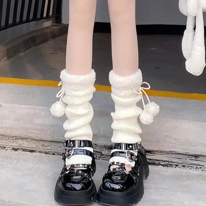 KOSAHIKI Japanese Lolita Sweet Girl Leg Warmer Knit Socks Wool Ball Knitted Foot Cover Cosplay Women Autumn Winter Punk Sock