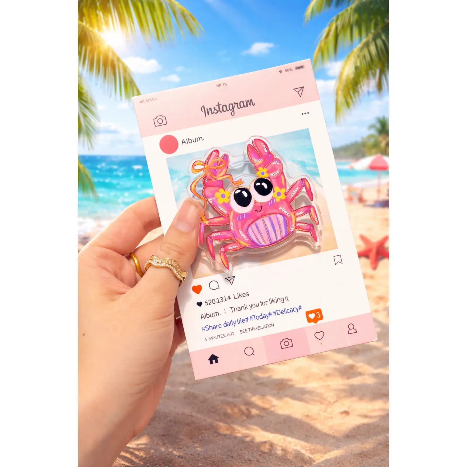 Summer Crab MagSafe Phone Grip, Cute Pink Beach Aesthetic Pop Socket, Magnetic Phone Holder for iPhone Kindle, Kawaii Ocean Animal Gift for HerSummer Crab MagSafe Phone Grip, Cute Pink Beach Aesthetic Pop Socket, Magnetic Phone Holder for iPhone Kindle, Kawaii Ocean Animal Gift for Her