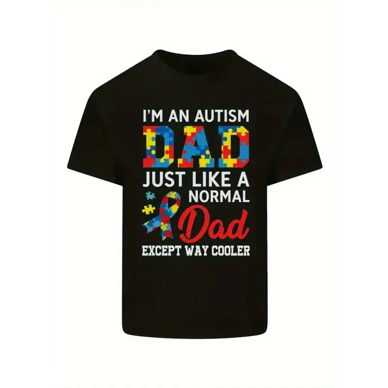 Men's Autism Dad Graphic T-Shirt - Autistic Father's Day Themed Print, Sports Style, Perfect Gift for Autism Dads & Family Gatherings