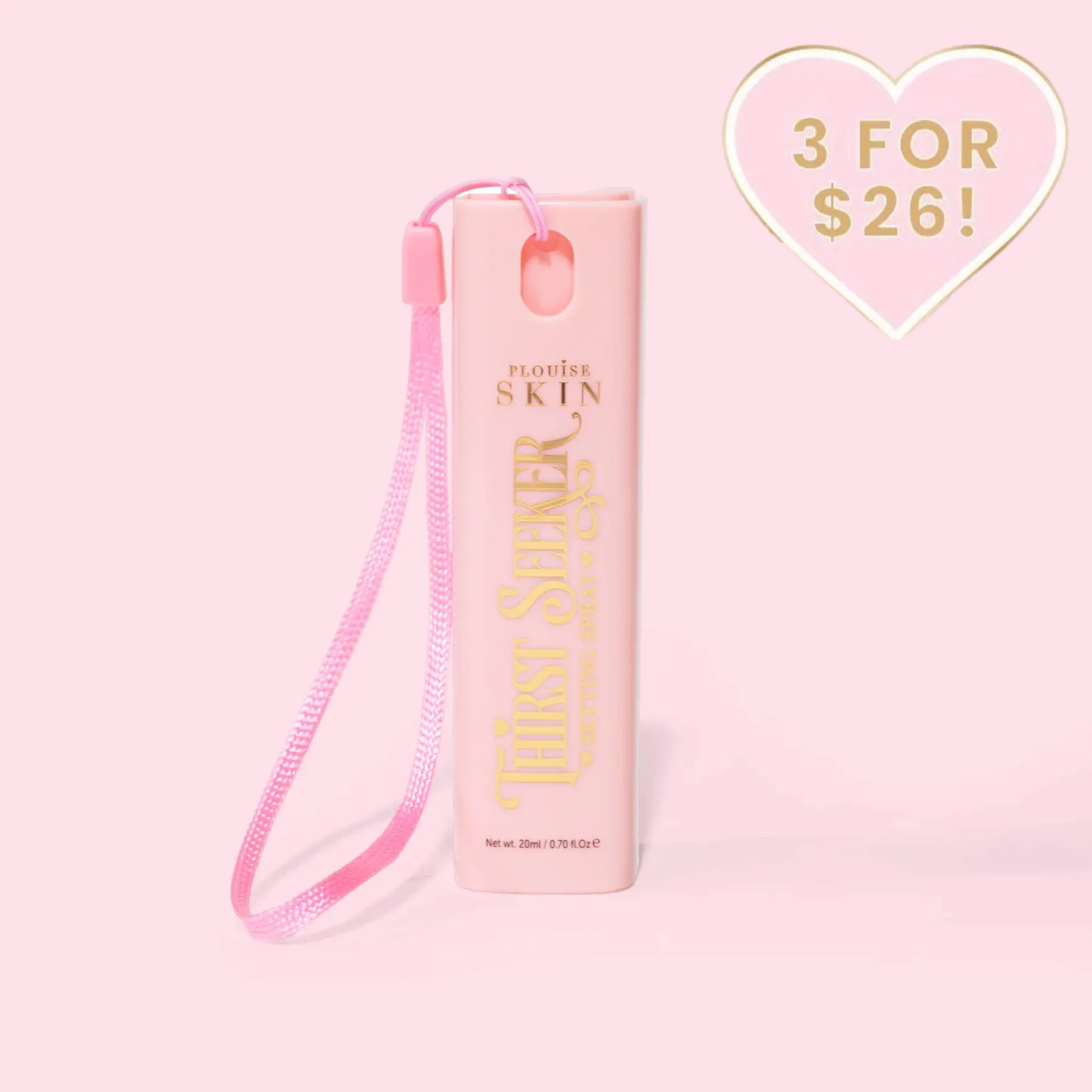 Give your skin the hydration boost it craves with our Mini Keychain Thirst Seeker Setting Spray, now in a mini travel-size bottle with a pink fabric handle for easy, on-the-go application.