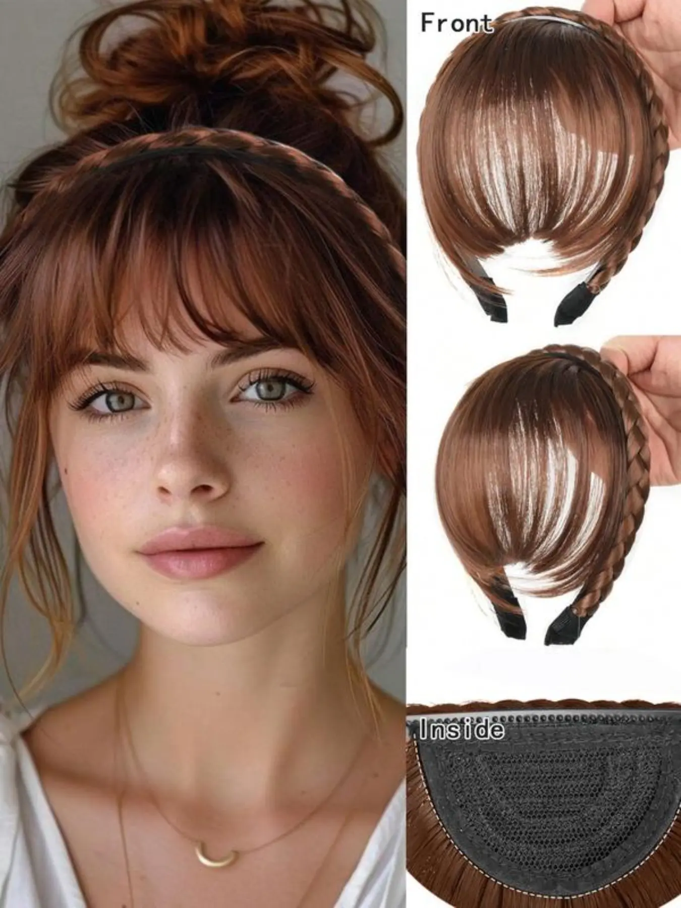 Slip Resistant Fluffy Blunt Bangs Fishtail Braid Wig Headband with Sideburns Bangs Elegant Braided Hair Simple Hair Accessory for Party Holiday Vacation Daily Wear Women Headband