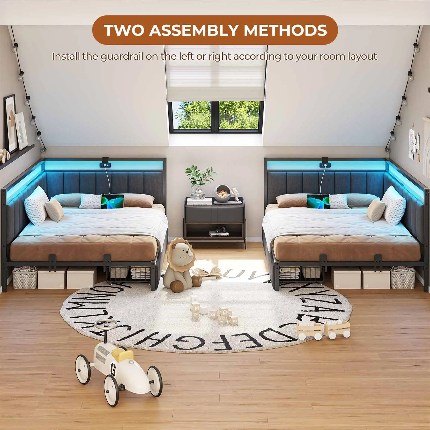 If you're looking for a high-quality, space-saving, and stylish daybed that combines smart features like LED lighting and a charging station, the LED Daybed with Line Fabric Upholstered Fence and Charging Station Grey is an excellent choice.