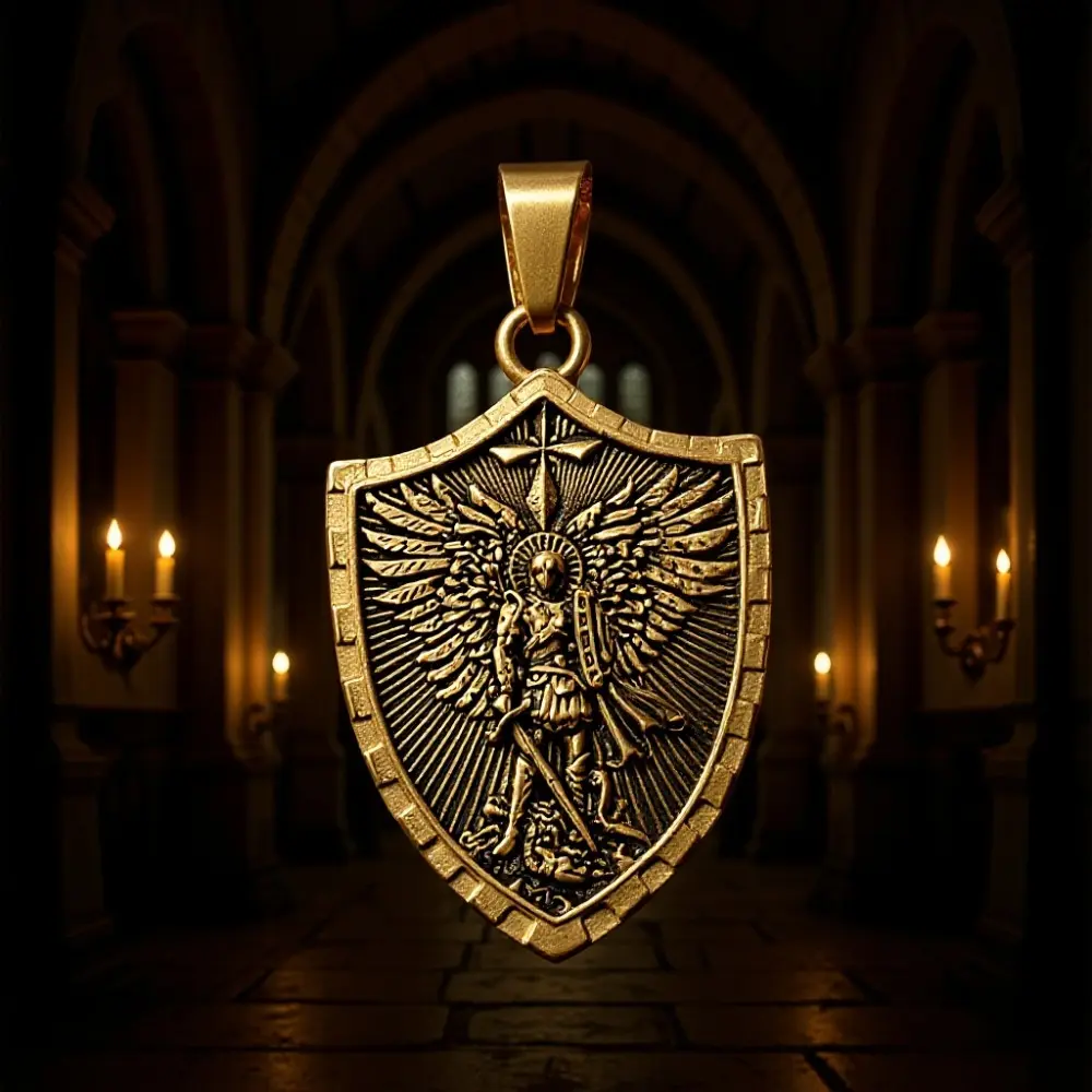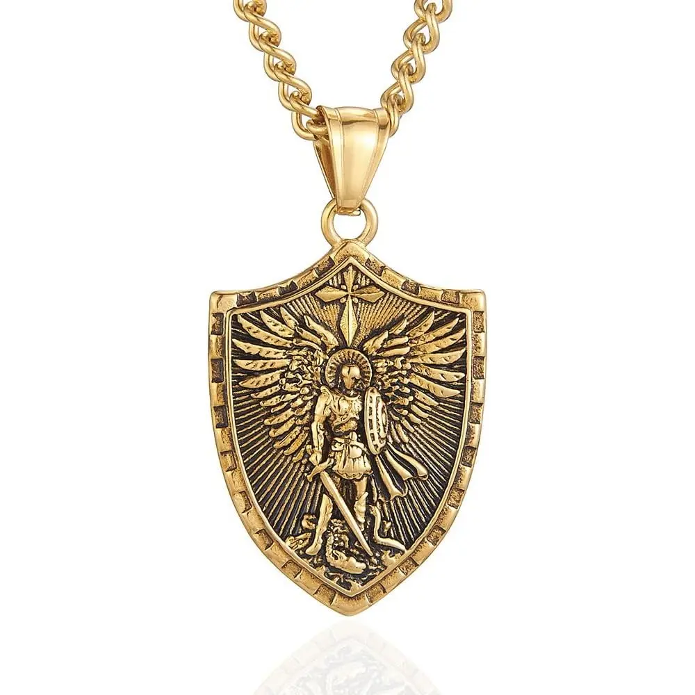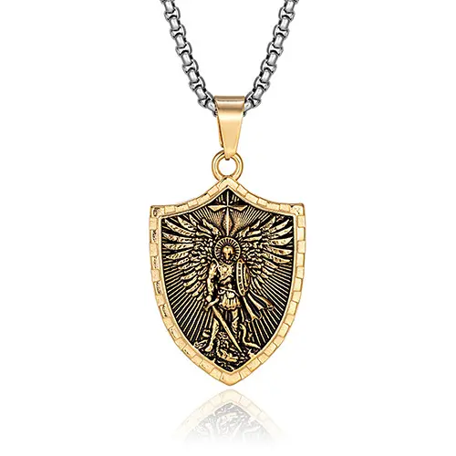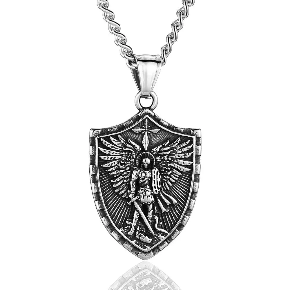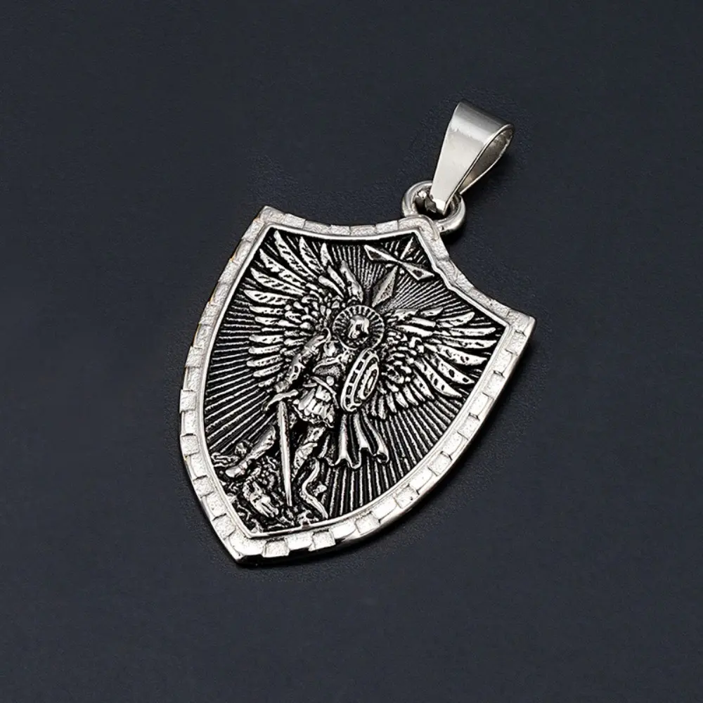 Stainless Steel St. Michael Necklace — Archangel St. Michael Shield Pendant Amulet (Unisex)