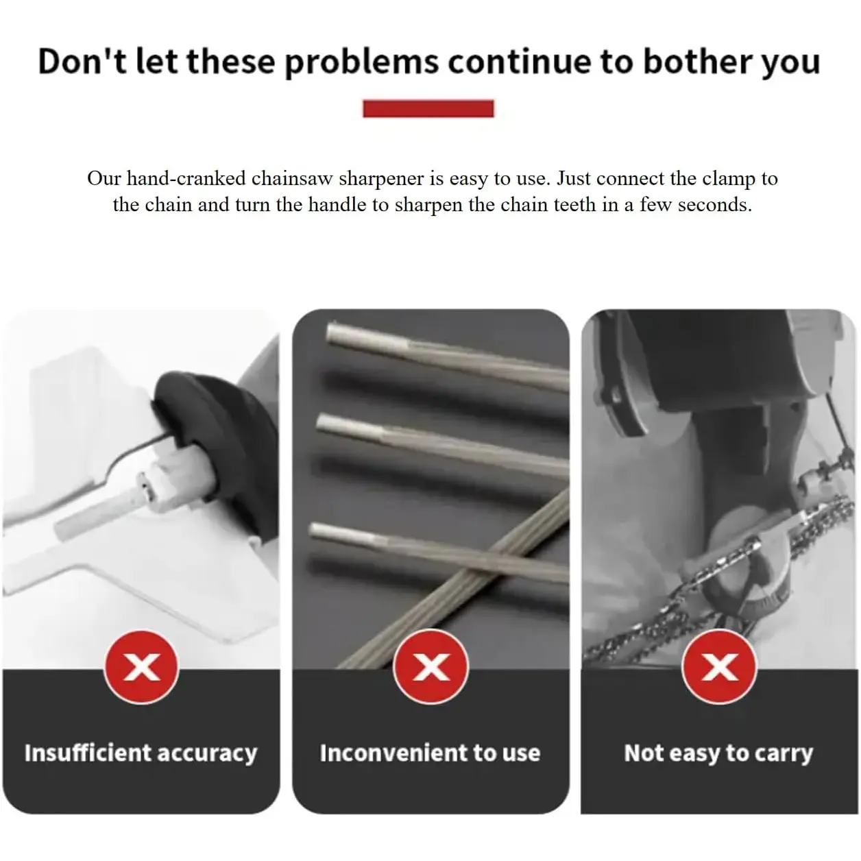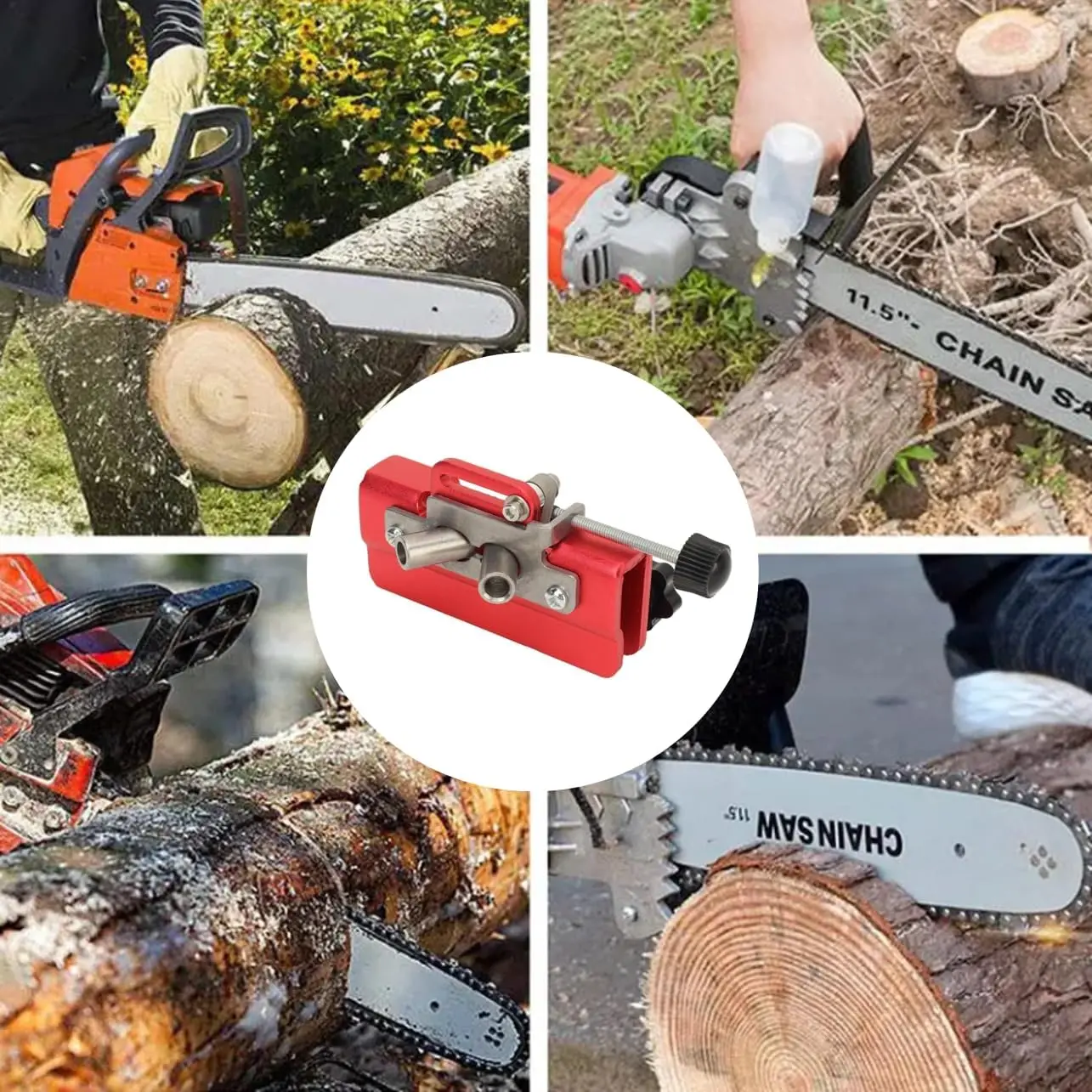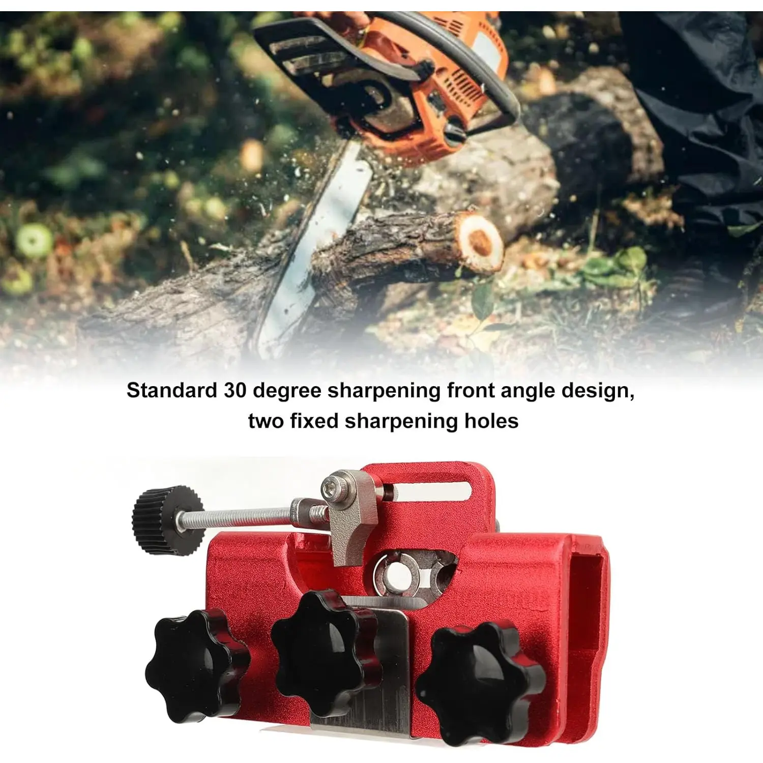3 Burrs Chainsaw Sharpener Hand Crank Kit 30 Degree Manual Chainsaw Sharpening Jig with Two Fixed Sharpening Holes, Aluminum, Red, No Assembly Required