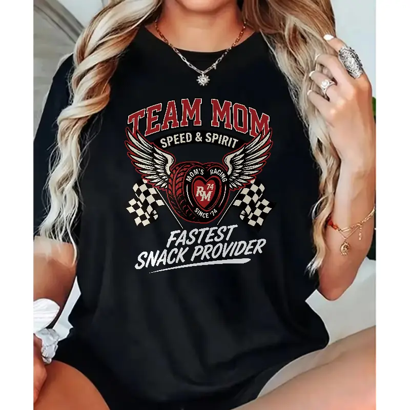 5. Team Mom Fastest Snack Provider Racing Graphic Cotton Tshirt For Sports Moms