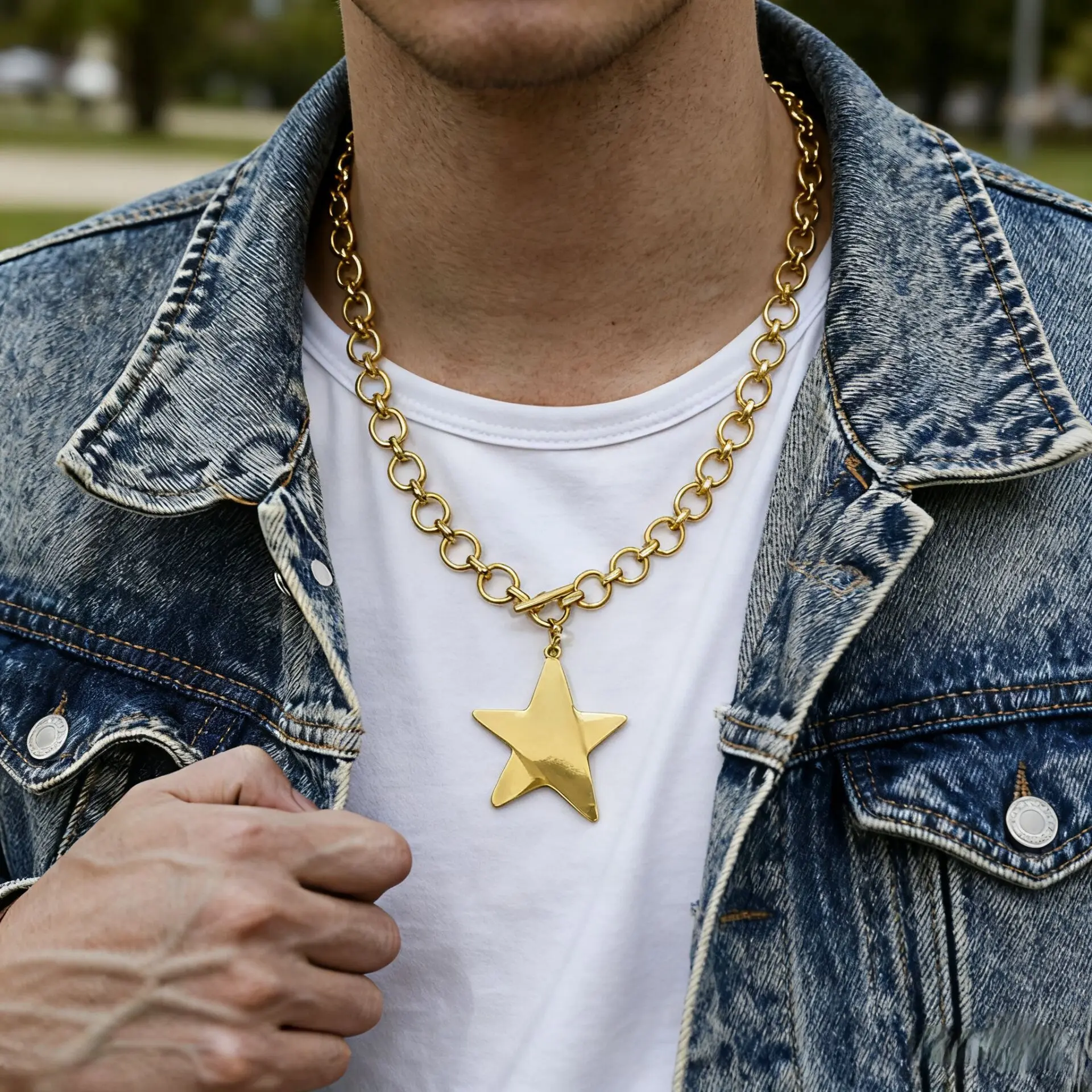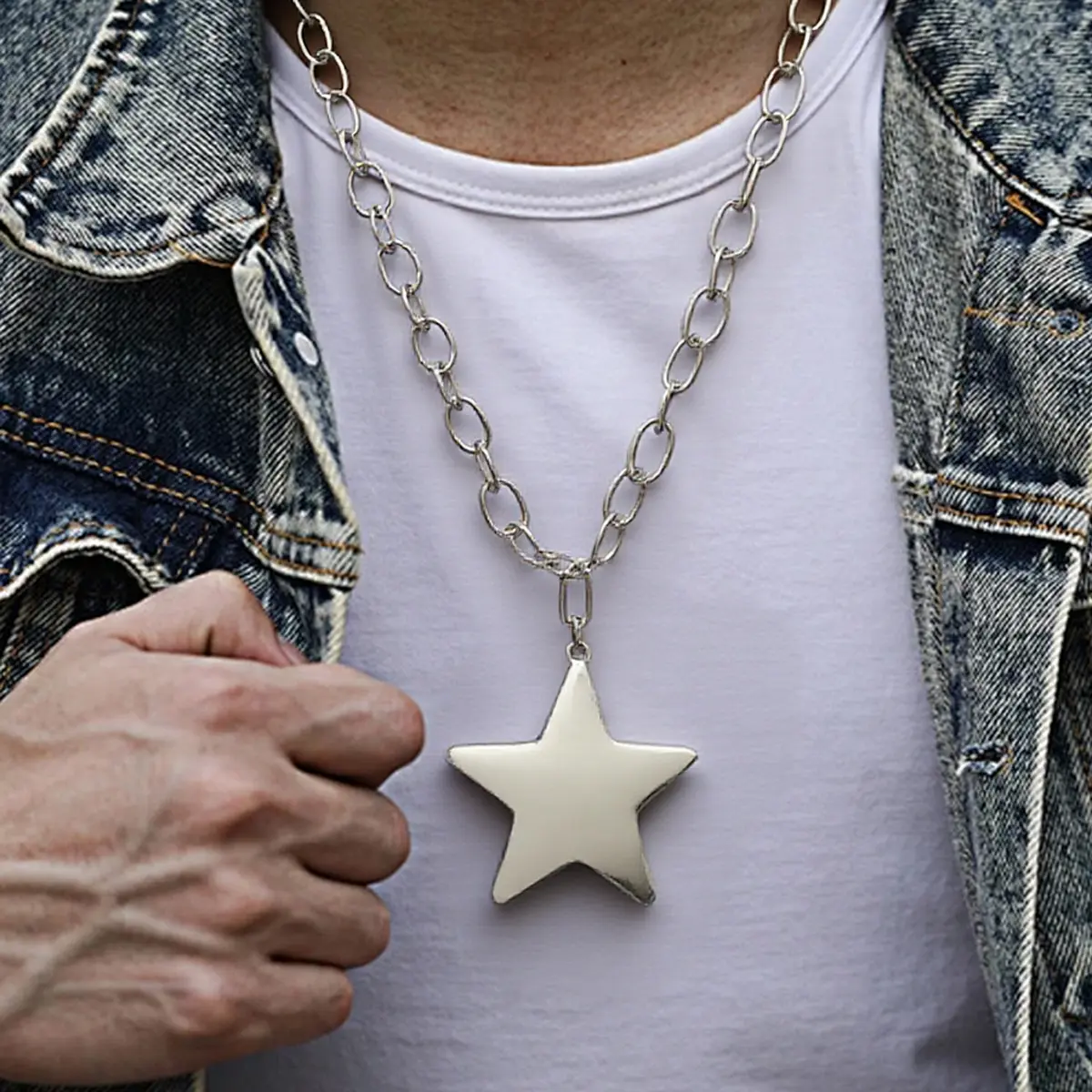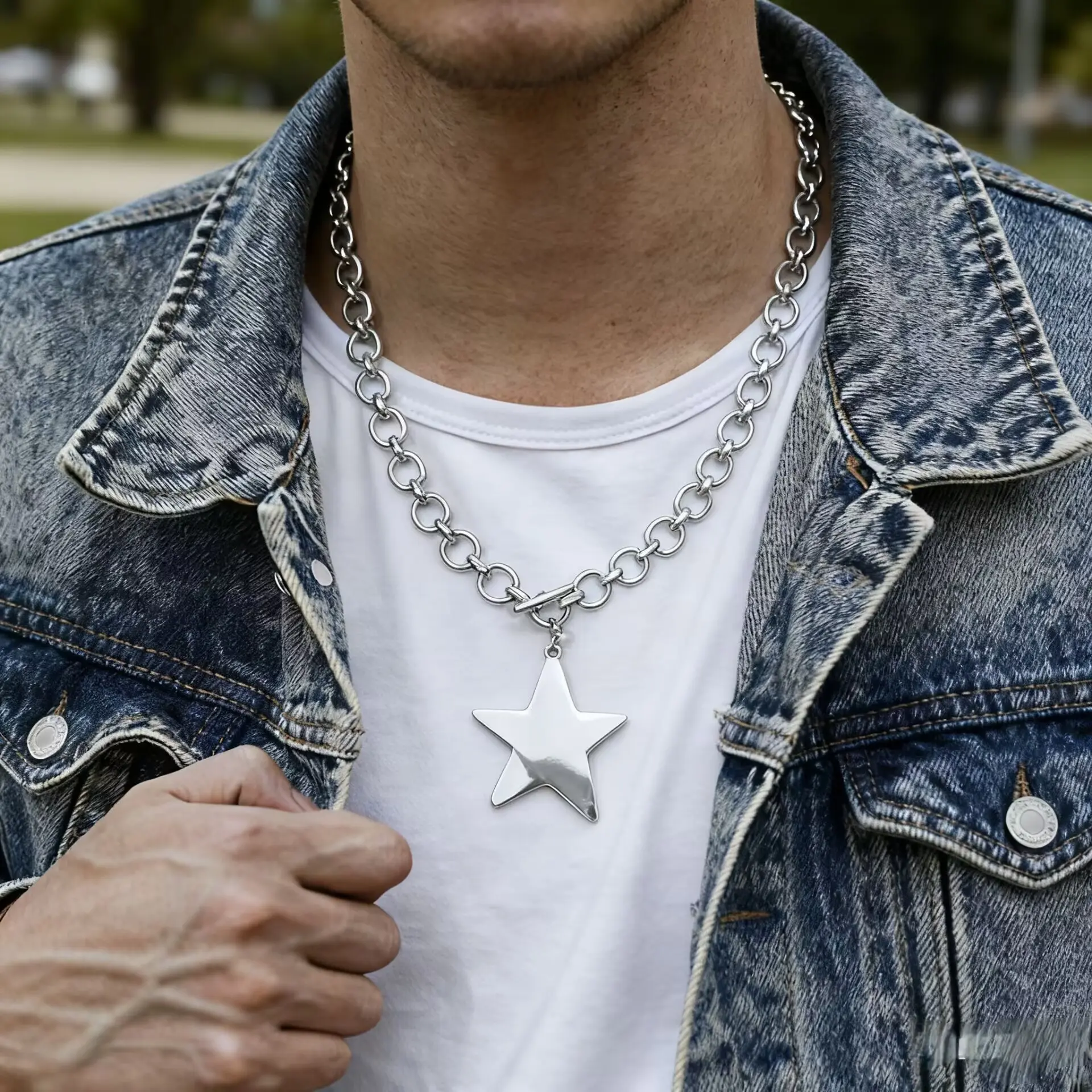 Men'S Venus Pendant Necklace, Large Pentagram Pendant With Thick Chain, Suitable For Daily Gatherings