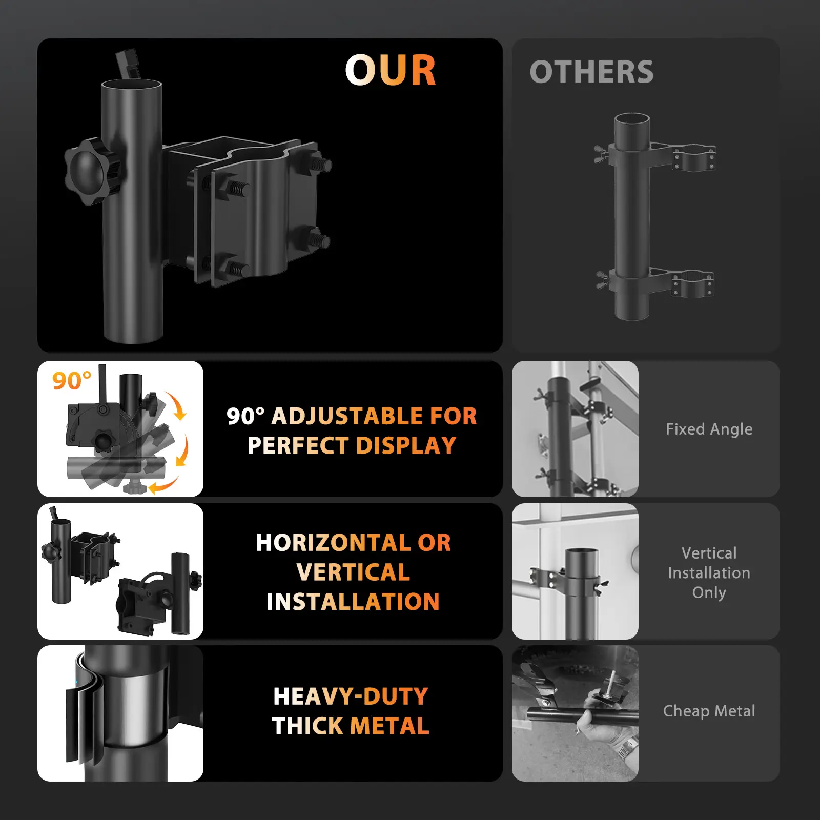 ·Patented Adjustable Angle Design: This RV flag pole mount features our exclusive patented design, allowing for precise angle adjustments without tools. Whether mounted vertically or horizontally, it provides the perfect display for your flag on your RV ladder, truck, or trailer, ensuring stability in various conditions