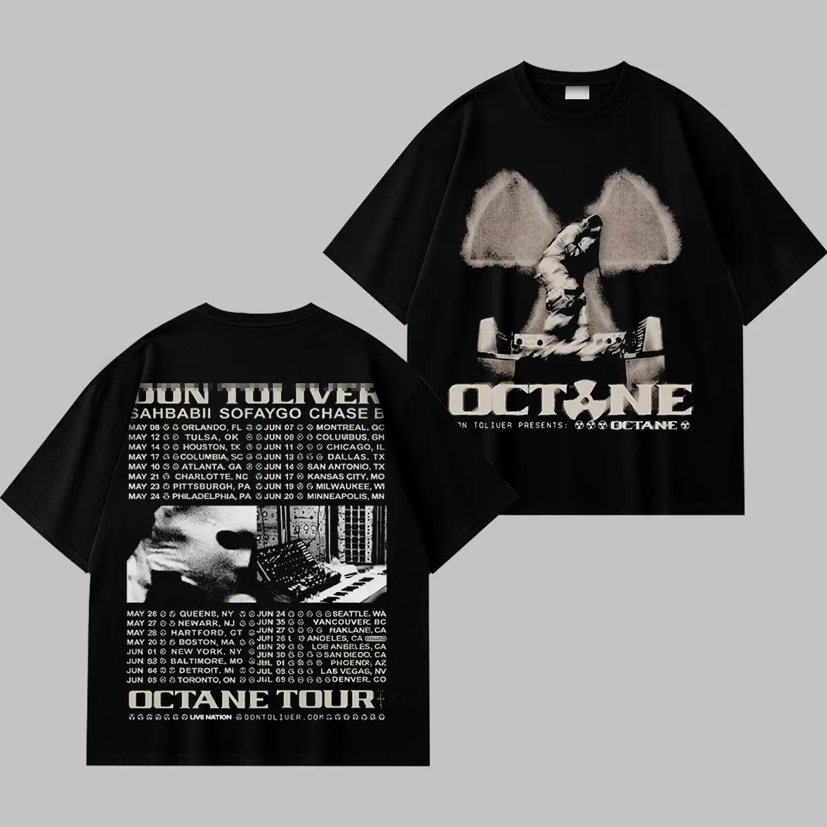 The front features an angel graphic, while the back displays a tracklist print. This design adds an authentic tour merch vibe, appealing to fans. It's a statement piece for rap enthusiasts and streetwear lovers.