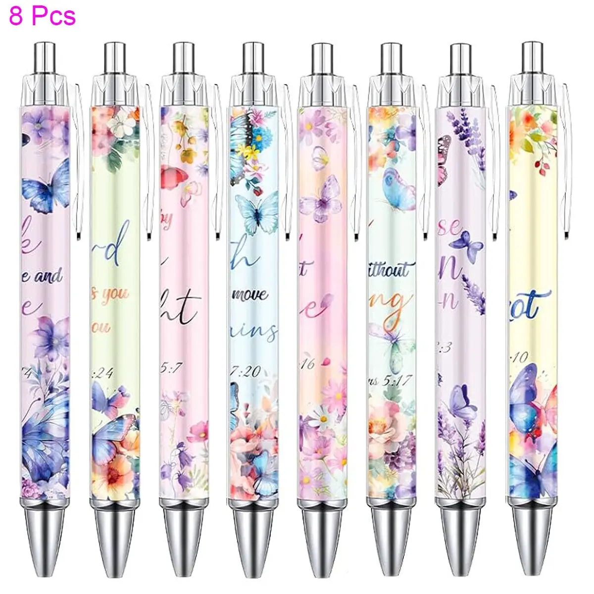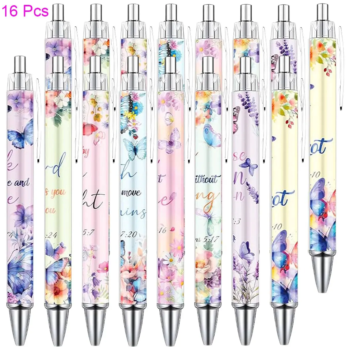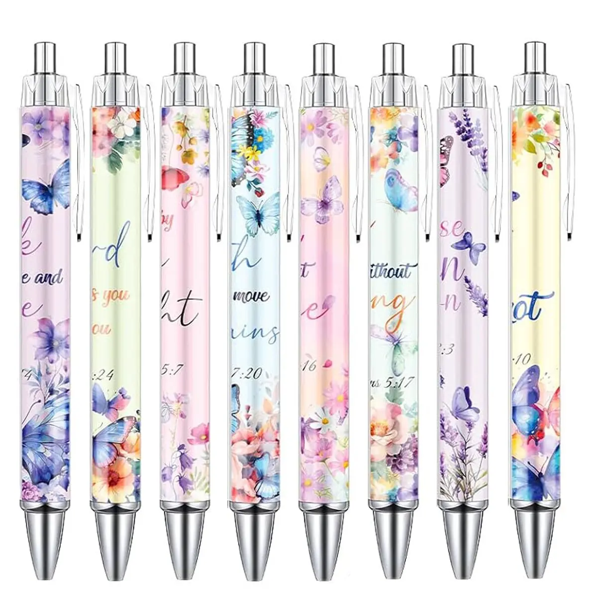【Ballpoint Pen Set】 You will receive 8/16/24 Pcs butterfly-themed bible verse ballpoint pens. Sufficient quantity and various styles to meet your daily writing and sharing needs, perfect for school, home, office, work or other activity scenes.