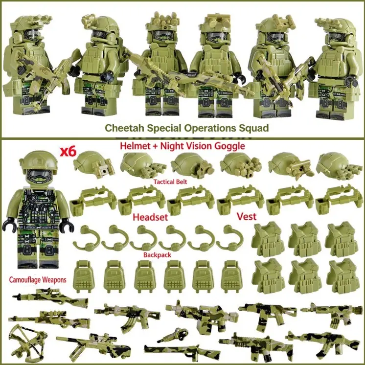 Dive into the world of military-themed play with this 6 PCS Compatible Building Blocks Military Set. Perfect for kids, it includes Commando Mini figures and Special Forces Army Men. These small bricks are ideal for army toy enthusiasts. Build and play with endless possibilities.