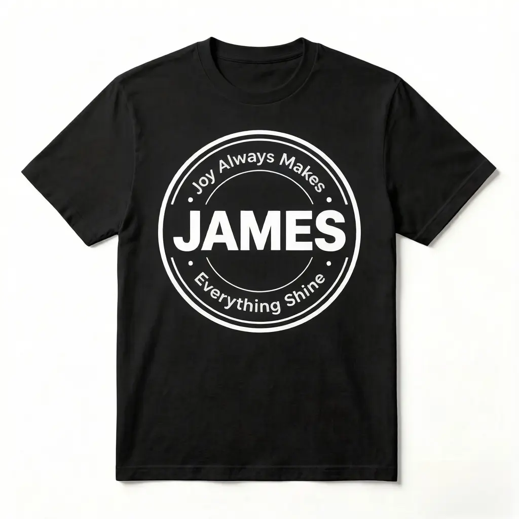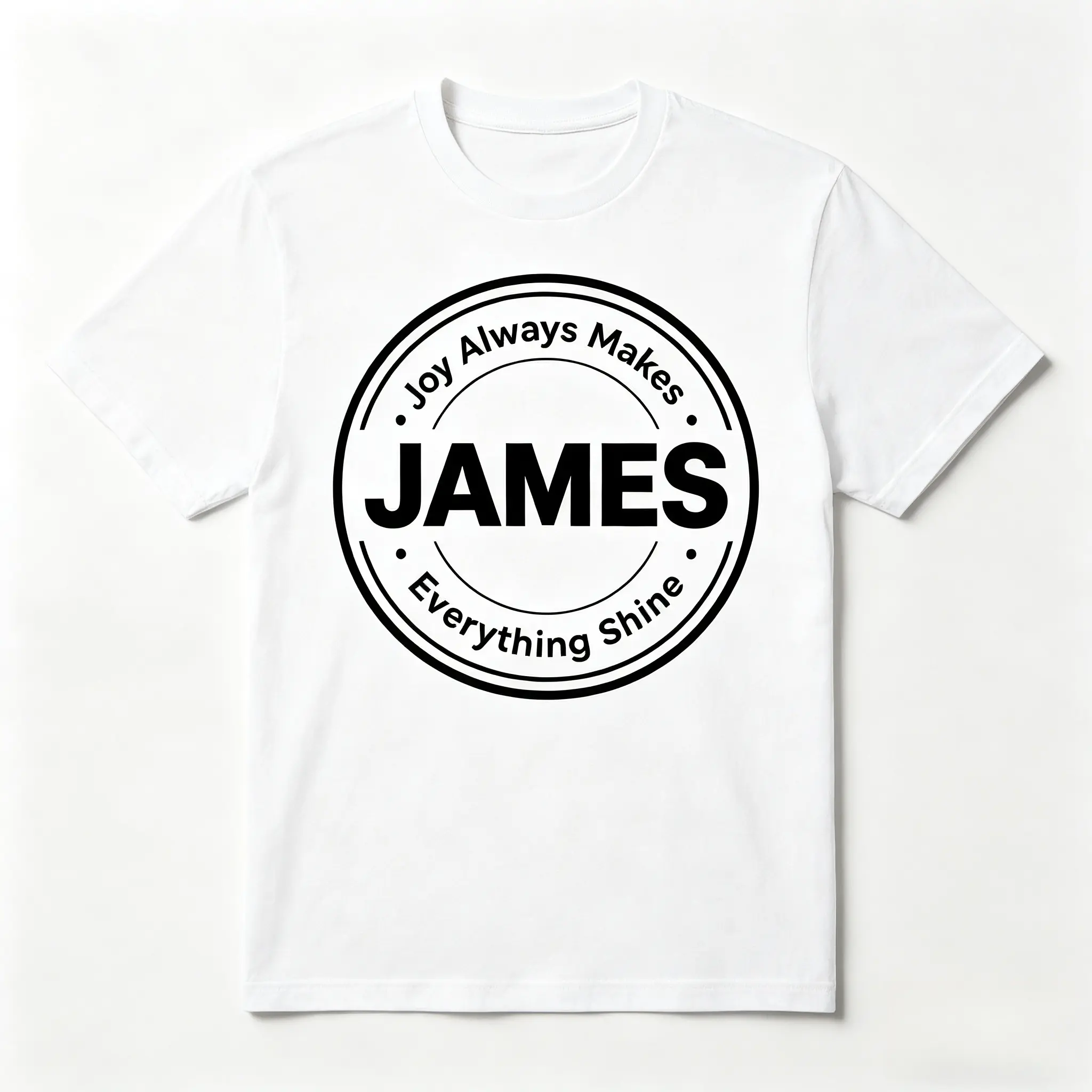 Vintage Circular Name Stamp T Shirt With Joy Always Makes Everything Shine Quote Personalized James Graphic Tee