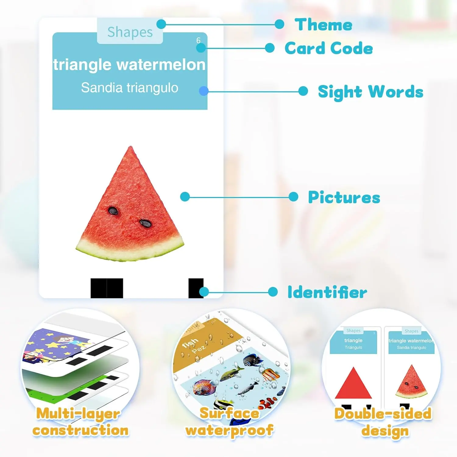 HOMESTEC Toddlers Bilingual Spanish & English Talking Flash Cards with 288 Sight Words, Speech Therapy Toys for 3 4 5 6 Years Old Boys and Girls, Learning Educational Kids Gifts (Bilingual Version))