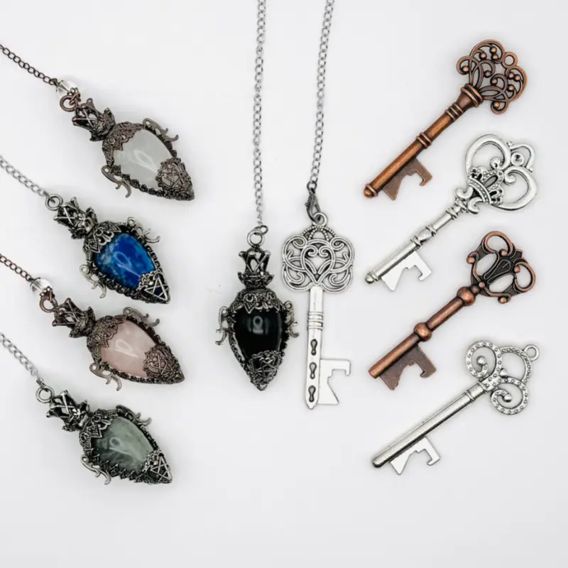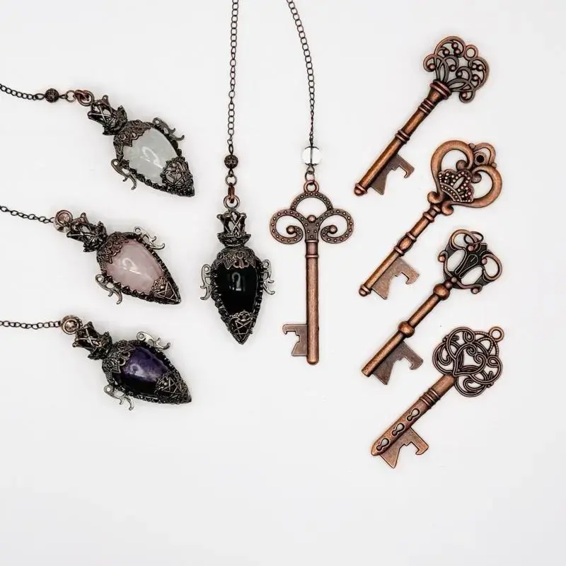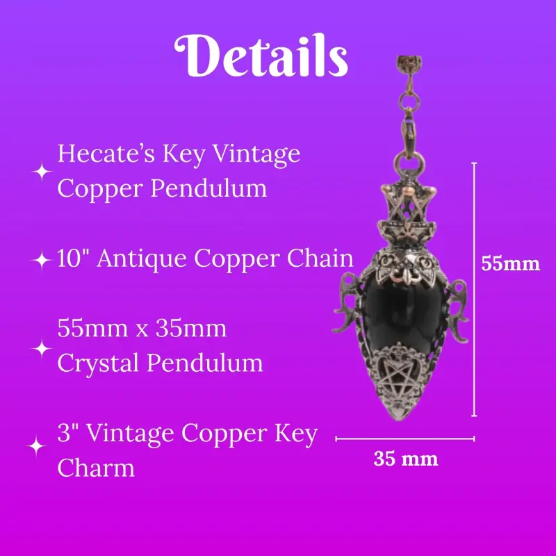 Channel the energy of Hecate, the Goddess of Witchcraft, with this vintage-inspired brass pendulum. Choose from four powerful crystals and five vintage copper keys. Perfect for dowsing and divination, this pendulum is your sacred guide to the unseen realms. Comes in a natural canvas drawstring bag for safekeeping.