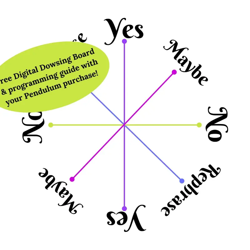 Hold the pendulum by the key, steady your hand, and ask questions. Use the digital pendulum board for enhanced practice.