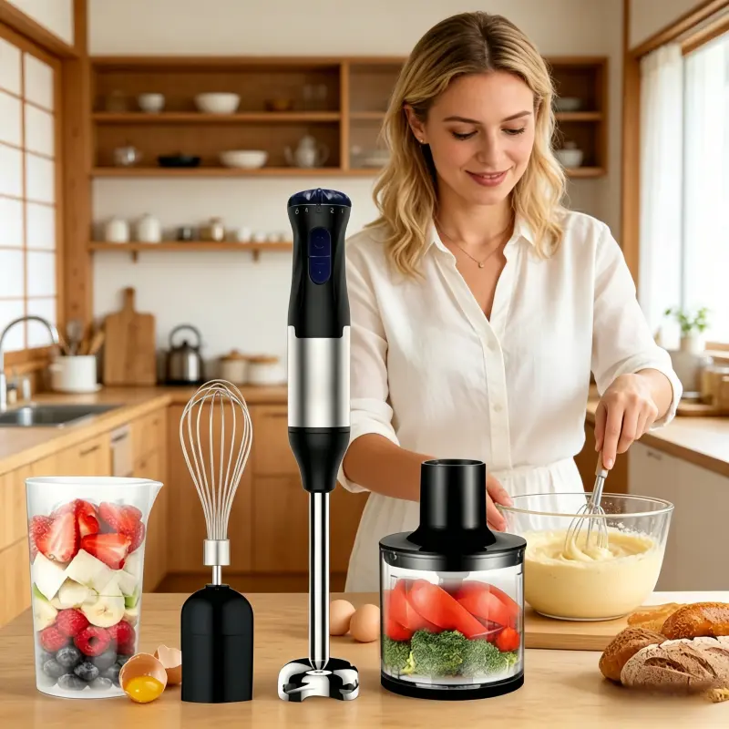 Electric immersion handheld mixer, portable stick mixer with 5 mixing speeds, and a meat grinder with stainless steel blades, suitable for meat, vegetables, fruits, and baby food