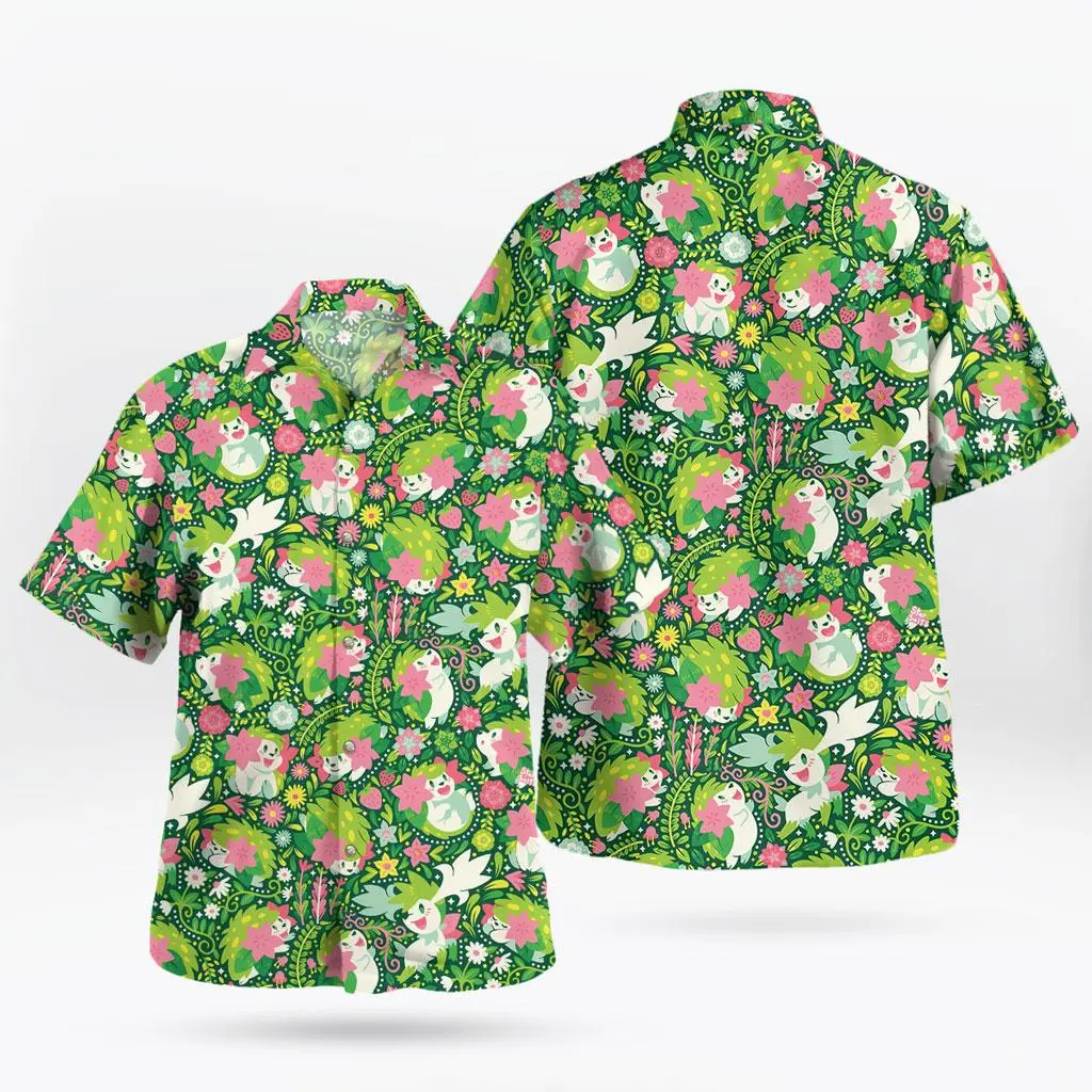 Aloha Shirt, Tropical Summer Shirt, Beach Vacation Outfit,Shaymin Floral Paradise Hawaiian Shirt – Inspired Tropical Style, Anime Hawaiian Shirt for Fans #alohashirt #hawaiianshirt #tropicalvibes #summeroutfit #beachwear #viraloutfit