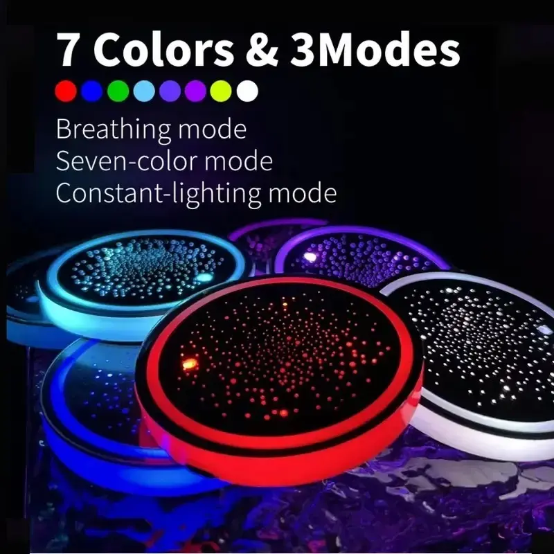 LED Cup Holder Light USB Rechargeable, 7 Color Changing Glow Interior Car Accessory, Non-Slip Cup Tray Ambient Lamp, Teenage Car Parts