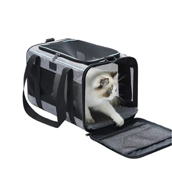 Mesh panels provide excellent airflow and visibility to keep your pet comfortable. Features top and side openings with secure zipper closures for safe and easy access.
