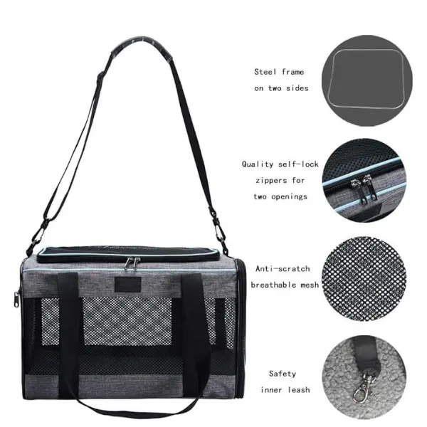 Airline Approved Pet Carrier for Cats & Dogs, Soft-Sided Travel Bag, Breathable Collapsible Pet Carrier for Small Medium Pets up to 16 lbs, Portable Cat Dog Carrier 17.5x11x11
