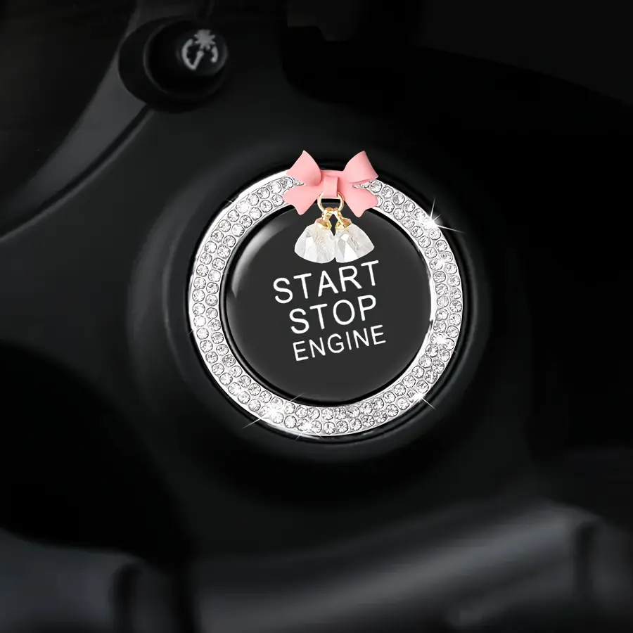 Car Start Button Decorative Ring: 1pc, with Diamond Bow Crystal Ignition Circle, One-Touch Start Sticker Decoration Ring