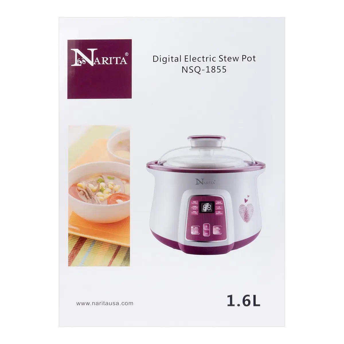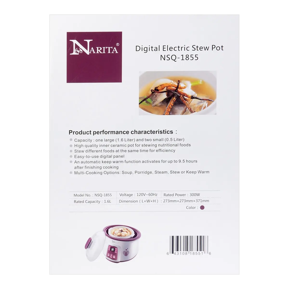 🌟 Experience effortless cooking with the NARITA Automatic Electric Stew Pot! This versatile cooker features a 1.6L main pot and two 450ml inner pots, perfect for preparing multiple dishes simultaneously.