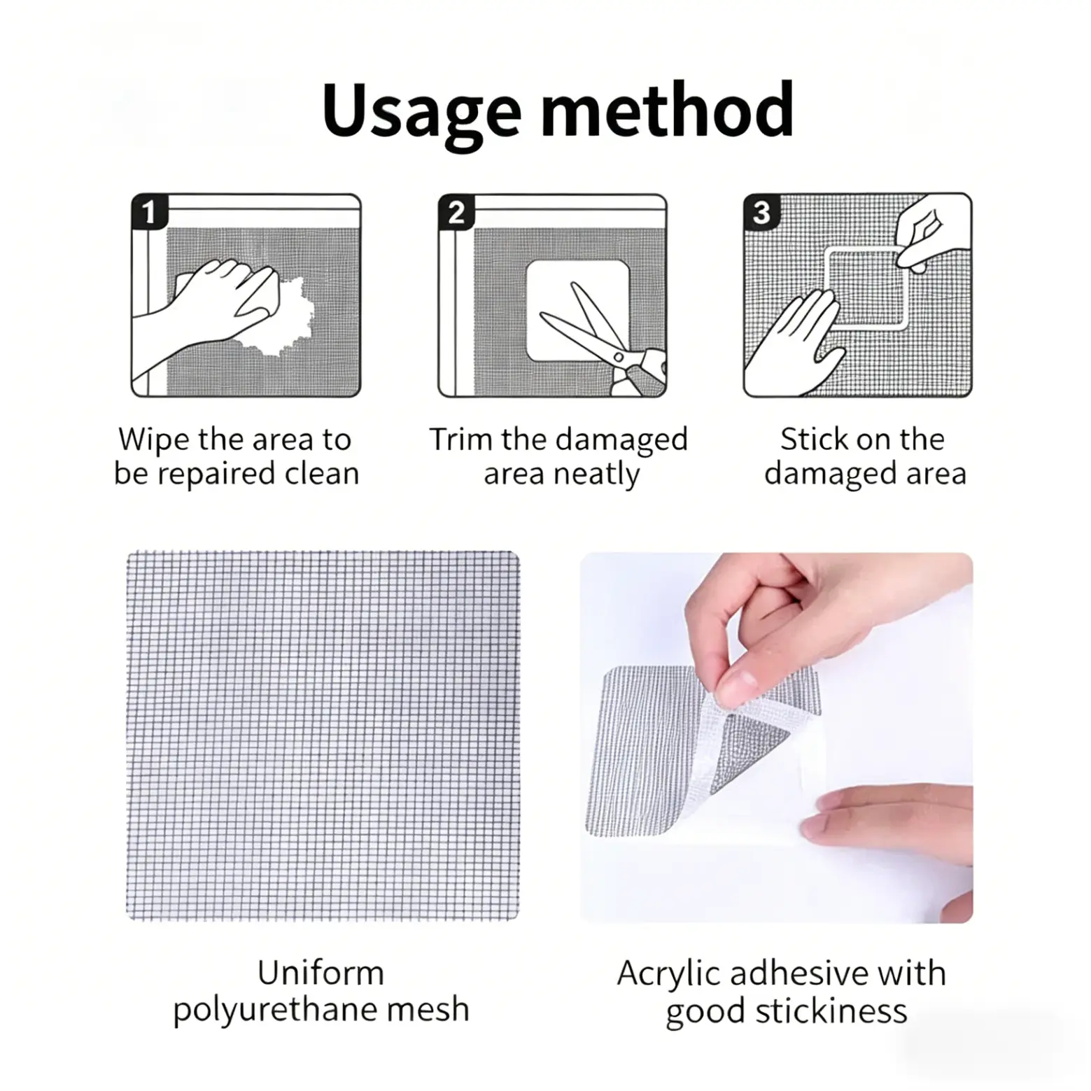 4PCS Window Screen Repair Tape, Self-Adhesive Fiberglass Mesh Patch for Screen Door, Window Netting Hole Fix