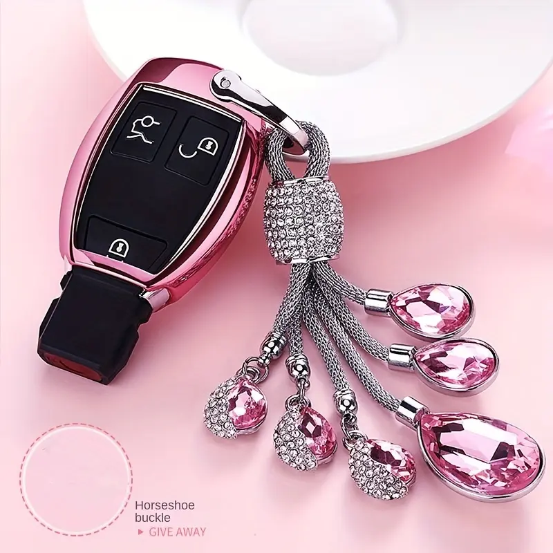 High-End Women's Car Keychain with Horseshoe Buckle, Suitable for BMW and for Mercedes-Benz Key Accessory Cord, Featuring High-Grade Artificial Diamonds
