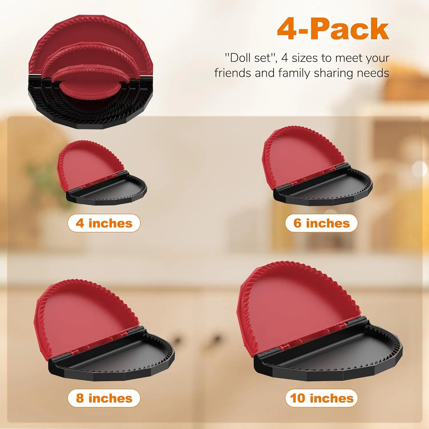 4 Pack Tortilla Sealers, 4-In-1 10"+8"+6"+4" Flour Tortilla Crimper, Quesadilla Maker, Tortilla Press - Make Tacos, Crumpet, Calzones, Burritos - Environmentally Friendly Biodegradable Material